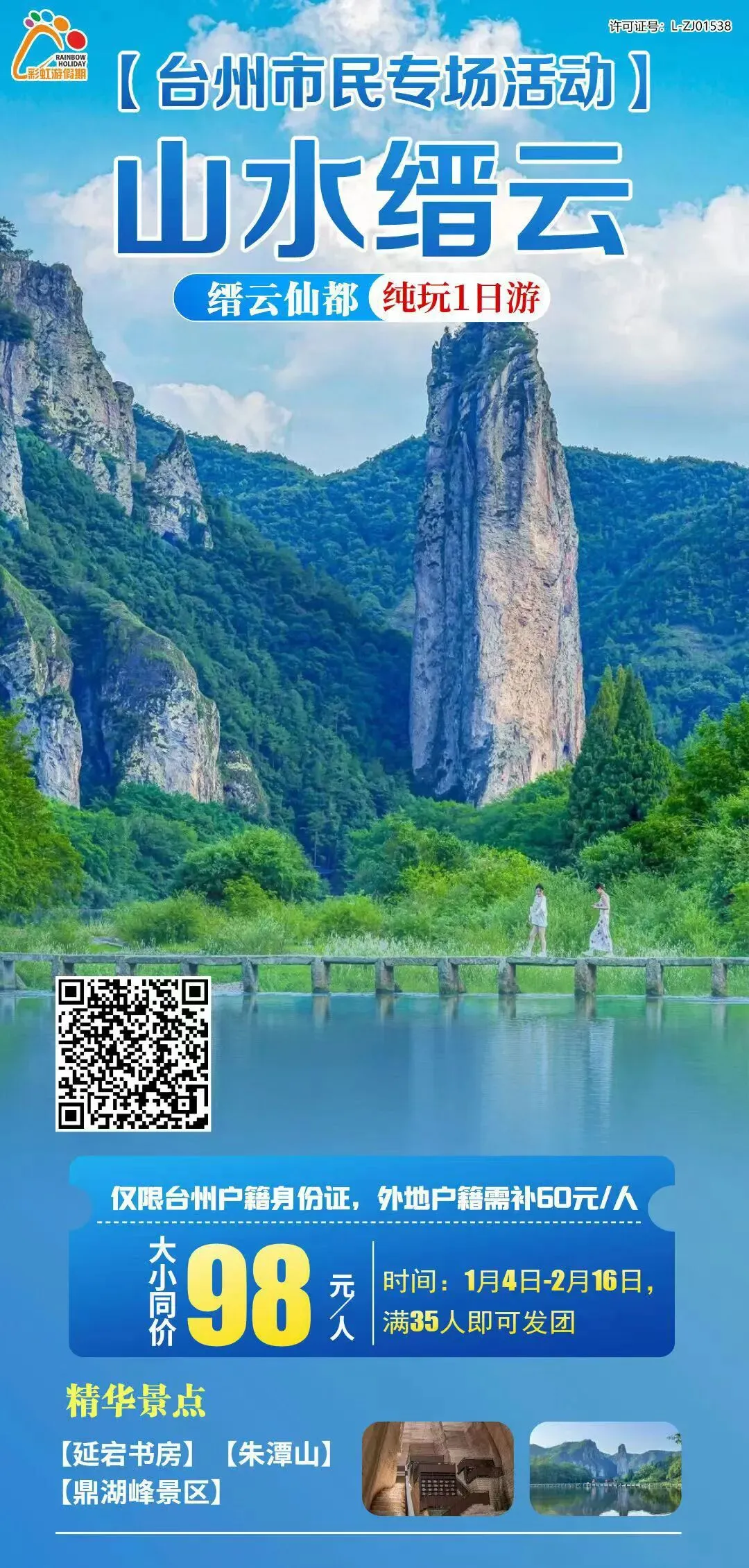 旅游资讯:台州市民专场活动,山水缙云纯玩一日游