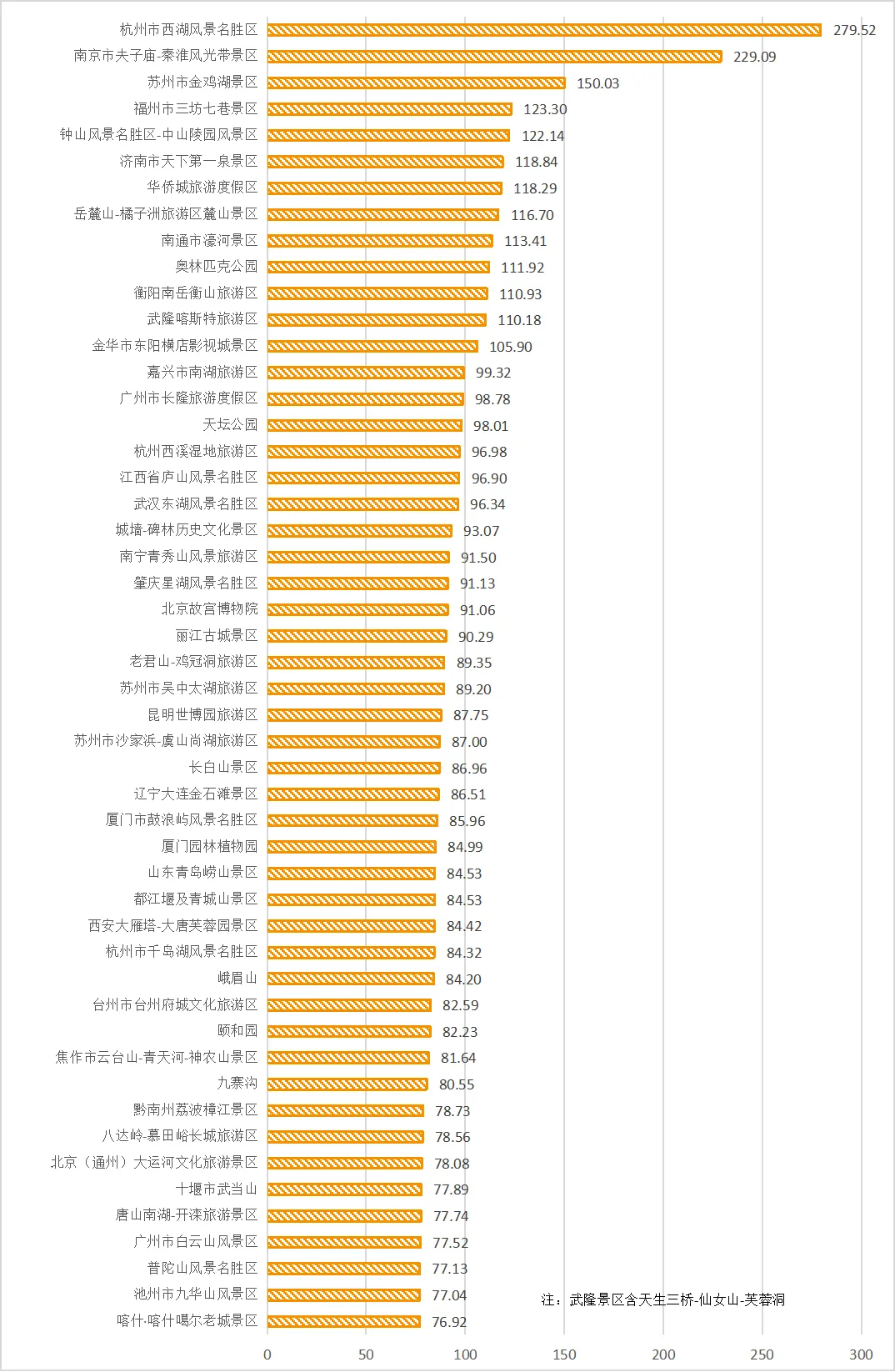 表1 元旦假期5A景区游客量TOP50