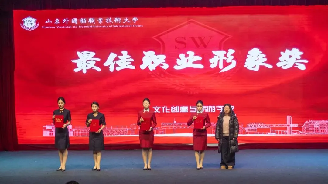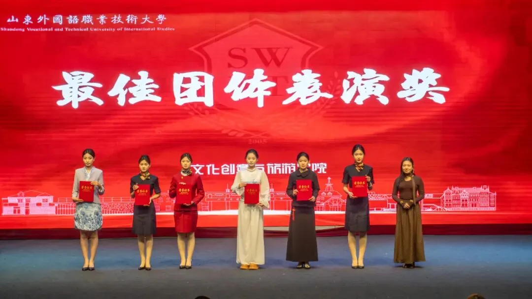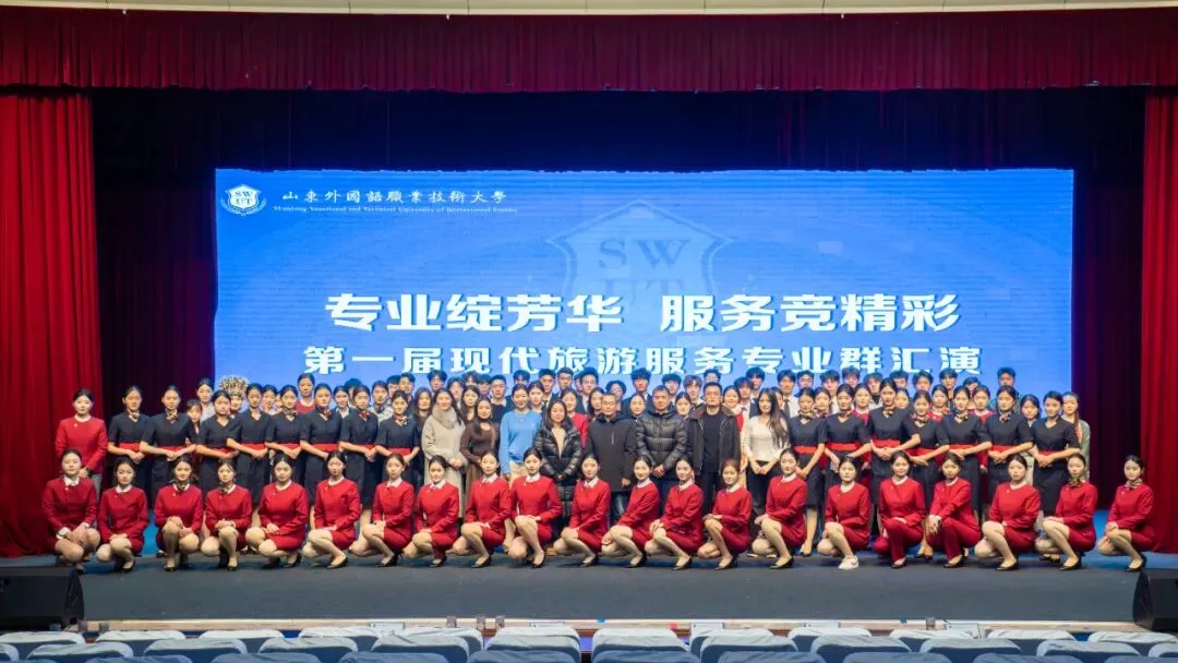 本次合展聚焦各个专业核心素养与才艺展示,节目内容兼具专业性与创意性。本次结课展示,三大专业的同学们联袂奉上了一场专业与才艺交融、服务共青春同台的精彩盛会。空乘学子以《客舱服务情景剧》与礼仪操演,精准诠释了高空服务的专业流程与优雅风范;酒管学子诠释了现代服务业的“礼仪之美,服务之美”的共通内核。旅游管理学子以《礼行秀场》与泰山文化讲解,精准诠释了旅游行业的“体验之美,传播之智”的独特内核。