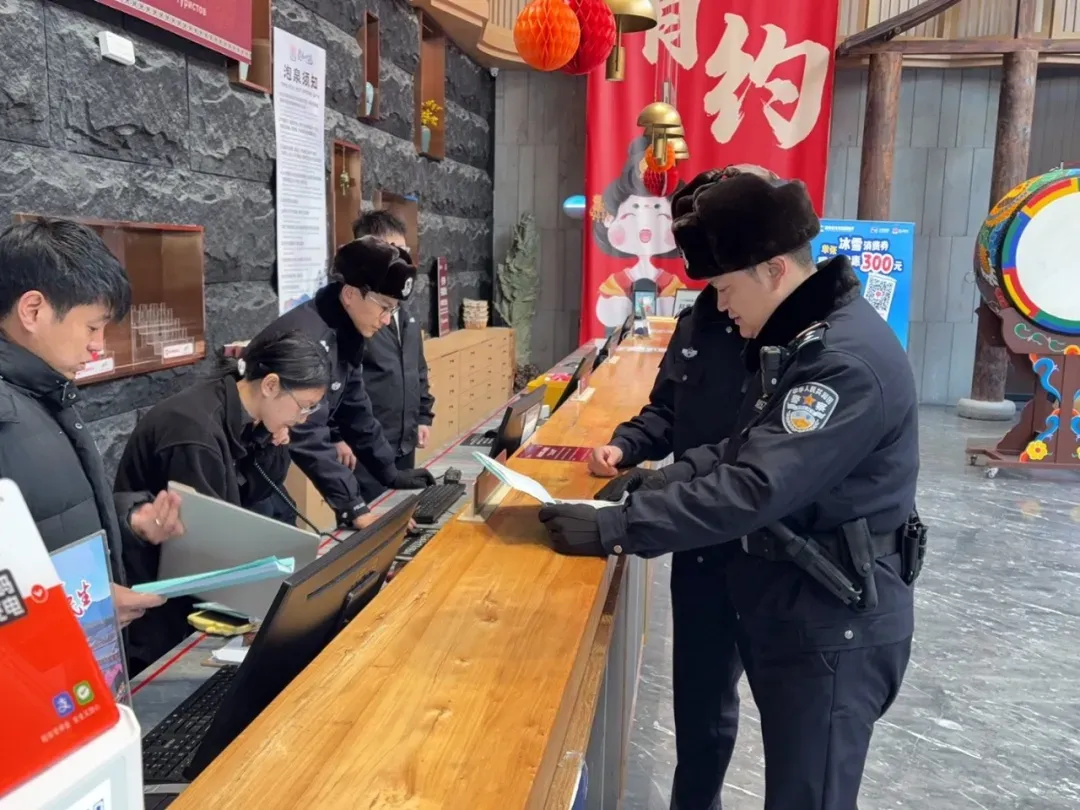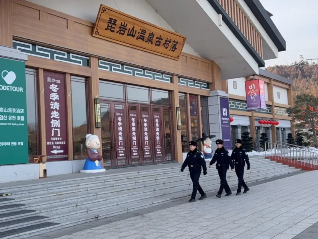 随着元旦佳节的到来,梨园派出所辖区的海兰江滑雪场和琵岩山温泉古村落迎来客流量高峰。为保障节日期间游客出行平安,护航冰雪旅游市场有序运转,派出所创新“定点值守+动态巡逻”防控模式,最大化提升见警率、管事率、处事率。在雪道出入口、雪具大厅、停车场、温泉古村落等人员密集区域,设置固定执勤点位,疏导人流车流,避免拥挤踩踏风险;针对景区客流高峰时段,增派警力开展高频次动态巡逻,重点排查雪道内危险滑行、游客走失等情况,及时发现并制止各类违规行为。同时,民辅警主动为游客提供路线指引、应急救助等暖心服务,用实际行动提升游客的安全感与满意度。