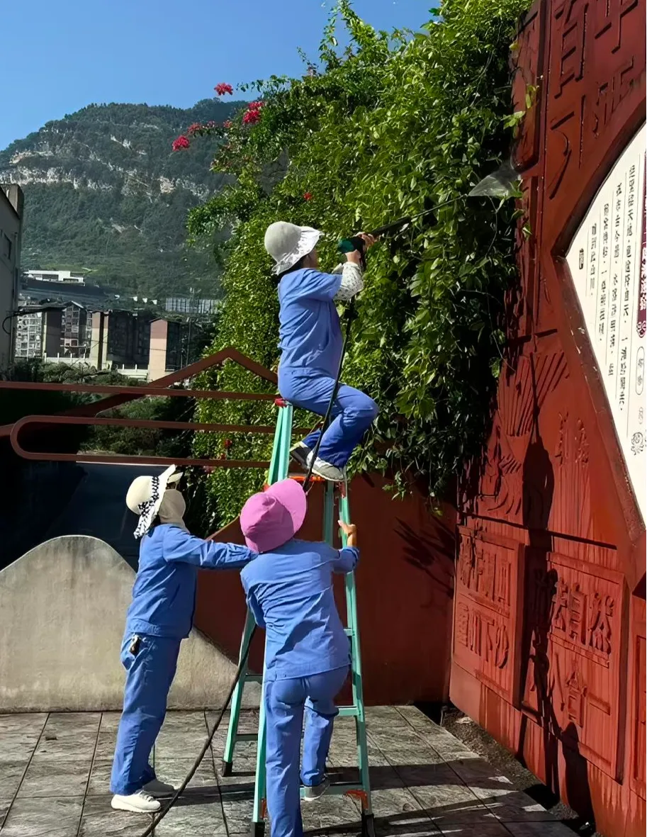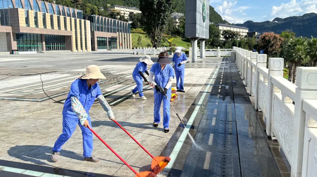 专项团队先与习酒方深度对接,精准明确卫生责任区域、梳理卫生死角与安全排查重点,结合景区不同区域的地面材质、场景特点,量身定制双组并行的服务方案。保洁组分区攻坚,科学选型清洁剂,采用温水稀释覆盖反应后高压水枪冲刷的温和方式清理顽固污渍,细致清除步道缝隙内的碎屑杂草,确保全域环境目视无杂;安全排查组同步核查,重点检查地砖松动、消防栓标识清晰等情况,与保洁工作形成高效互补,全力为景区打造洁净、安全的验收环境。