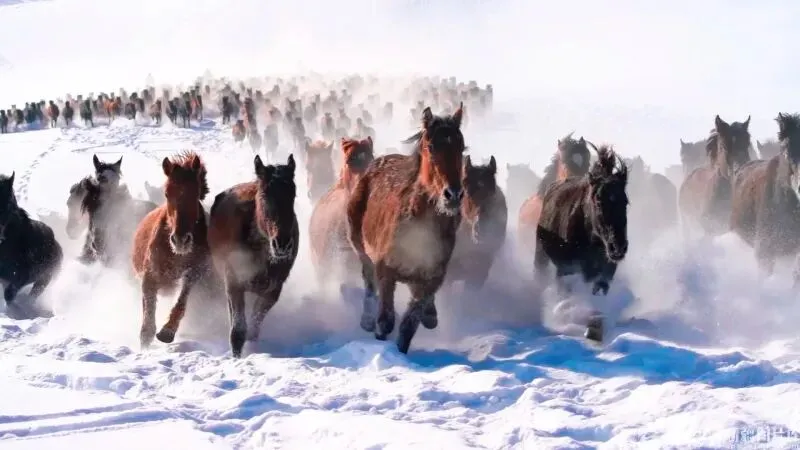 百匹马奔腾而过,骏马扬鬃奋蹄