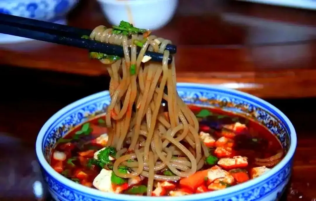 吃完烧鸡,怎能错过武功的旗花面?寻到巷子里的小店,老师傅正麻利地擀着面,面团在案板上辗转,擀成薄如蝉翼的面片,再切成细条。水沸下面,捞起后盛在碗中,浇上鲜美的鸡汤,撒上黄的蛋皮、绿的葱花、红的胡萝卜丁,五颜六色的臊子像绽放在碗中的花,难怪又叫“奇花面”。淋上几滴菜油,浇上足量陈醋,哧溜一口,面条筋道,汤汁酸香,一口接一口停不下来。当地人说,吃旗花面讲究“一口香”,量虽小,滋味却足,往往要吃上五六碗才过瘾。我学着当地人的样子,一碗接一碗,暖意从舌尖蔓延到四肢百骸,这小小的一碗面,藏着武功人对生活的精致与热爱。