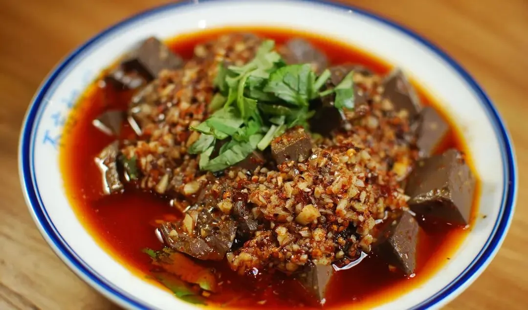 咸阳的夜,渐深渐静,我寻到街边的小摊,点一碗辣子蒜羊血,作为此行的收尾。羊血煮得鲜嫩,碗底铺着蒜末、辣椒粉、芝麻,浇上用葱段、花椒炸的热油,“滋啦”一声,香气瞬间迸发。拌匀后吃一口,羊血鲜嫩爽口,香辣过瘾,油而不腻,配着冰啤酒,是咸阳夜生活的绝佳滋味。这道小吃,藏着咸阳人的豪爽,也藏着市井烟火的热辣。