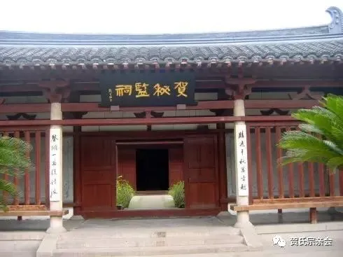 贺秘监祠位于浙江省宁波市秀丽幽静的月湖风景区柳汀岛上,东为居士林、关帝庙,南为柳汀衔,西北两面为月湖环抱。贺圣庙是为了纪念唐朝著名诗人”四明狂客”贺知章而建。
