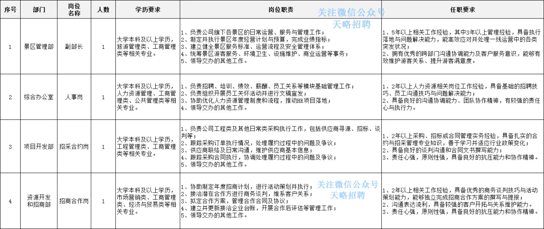 (四)资源开发和招商部招商合作岗1名;