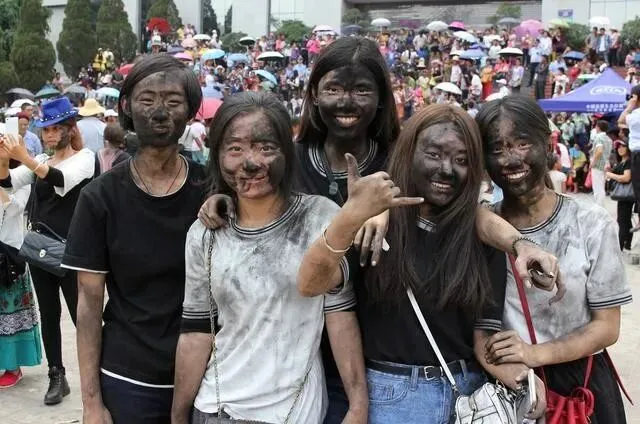 每年7月 , 上万人互相往脸上抹锅灰 , 越黑越吉利。
