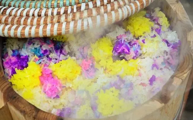 五彩糯米饭、时令鱼虾、荷叶鸡、荷叶粥、藕粉、三七炖鸡、酸汤鸡、紫洋芋……