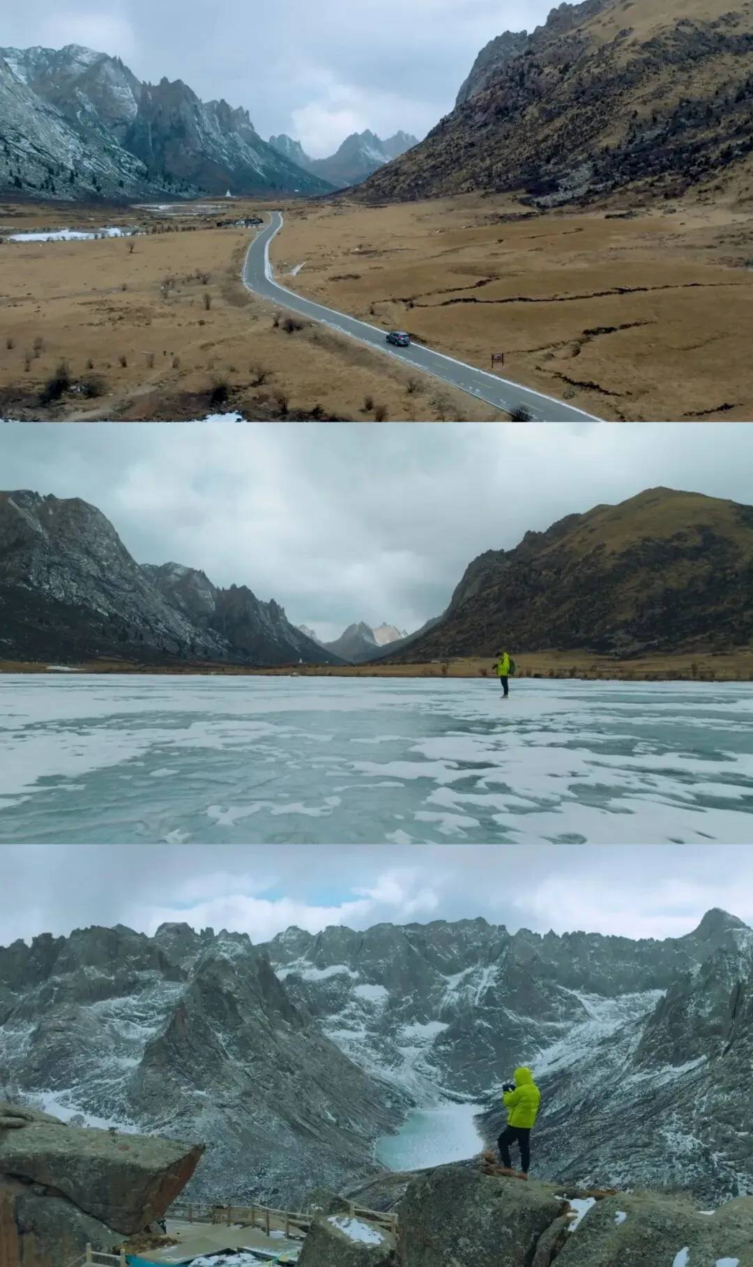 冬日的莲宝叶则,是藏在高原深处的冰雪秘境。巍峨雪峰身披银甲,在澄澈天光下熠熠生辉;碧蓝冰湖凝结成玉,将天地的辽阔与纯净尽数收纳;嶙峋的奇峰怪石裹着皑皑白雪,勾勒出独属于高原的苍茫与雄浑。