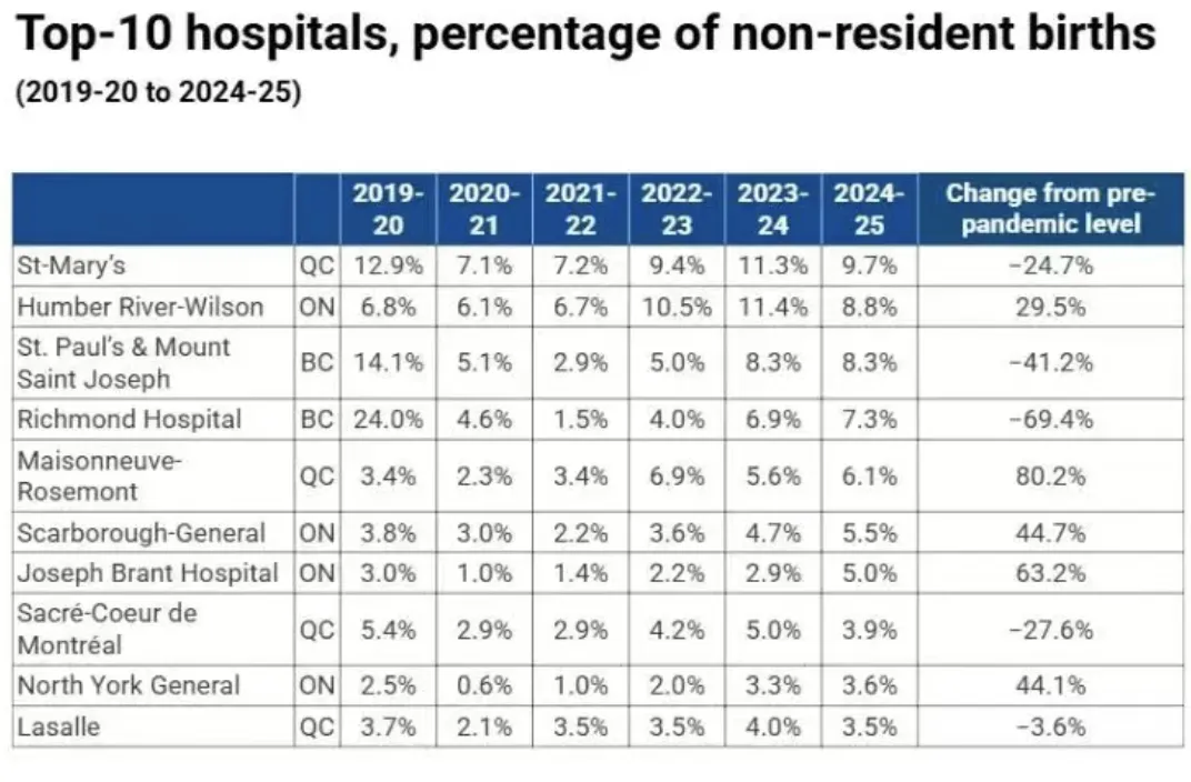 数据显示,2024年加拿大非居民分娩(包括外籍劳工、留学生及旅游者)的数量已恢复至5430人,逼近疫情前的5698人。