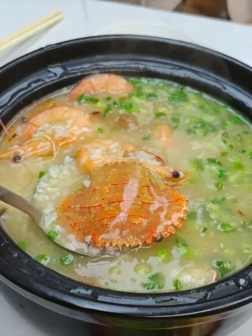 深夜一碗海鲜粥,姜丝下去,肚子暖,睡得稳,第二天脚不飘。