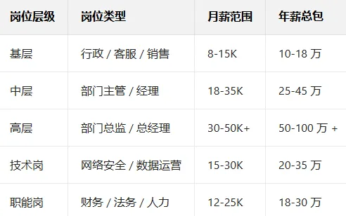 内地新一线 / 二线(海口、昆明等):比一线低 10%-20%,普通岗月薪多在 9K 内。