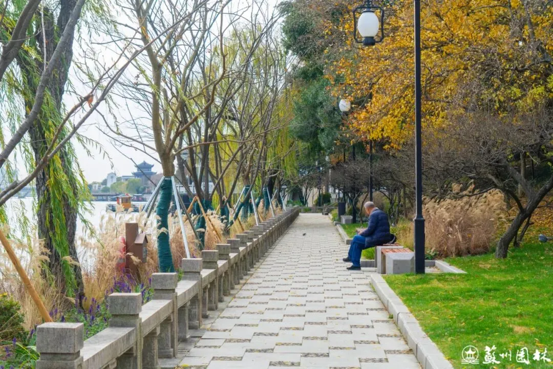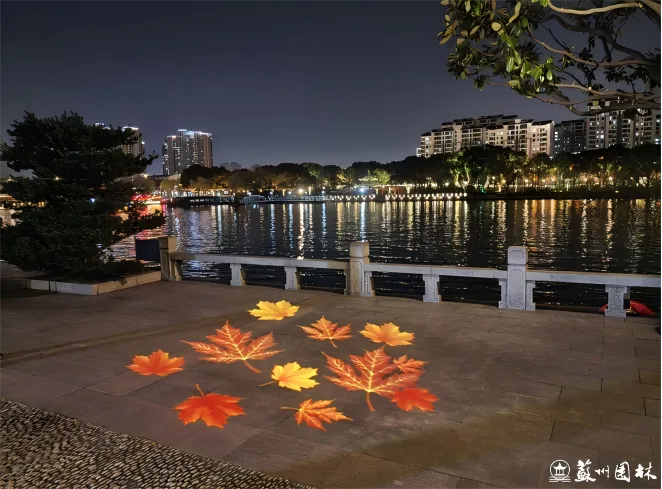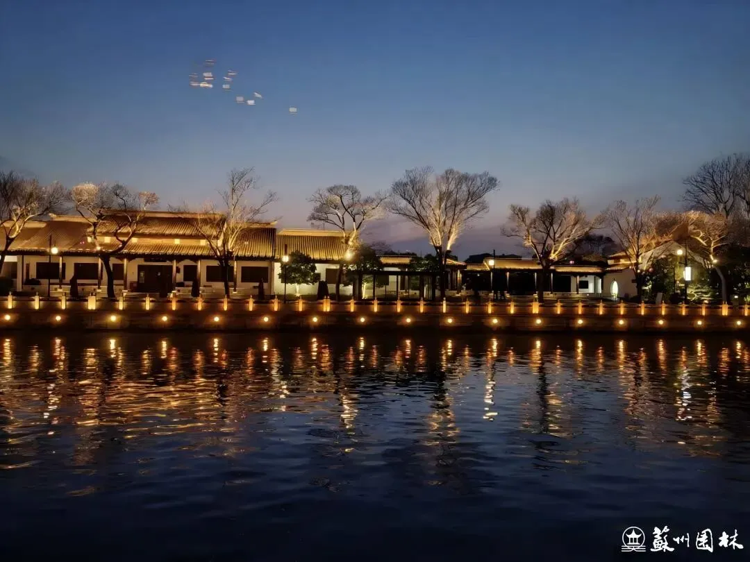 当夜幕降临,东园与桂花公园段的灯光悄然亮起。本次灯光亮化工程秉承“园林外移”理念,用柔和温暖的灯光,精心勾勒亭台轮廓,细腻烘托假山叠石,让苏式园林的美学韵味在夜晚得以延续,为夜行增添一份安全与雅致。