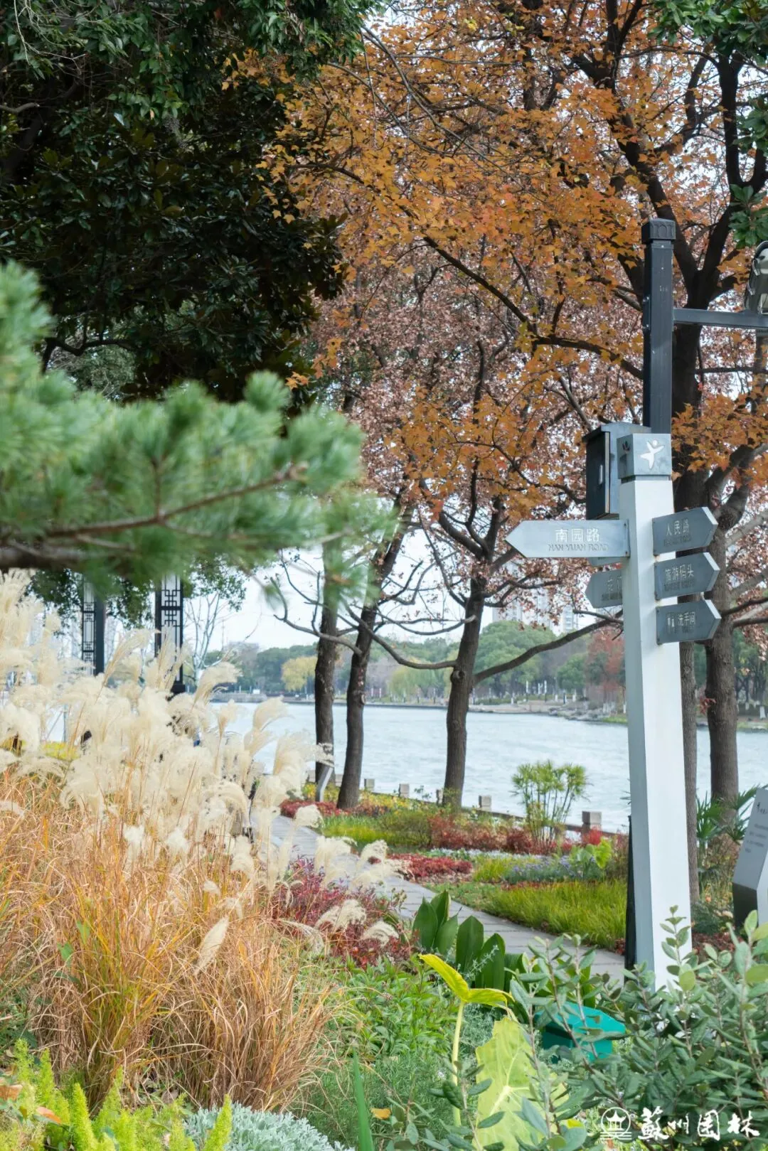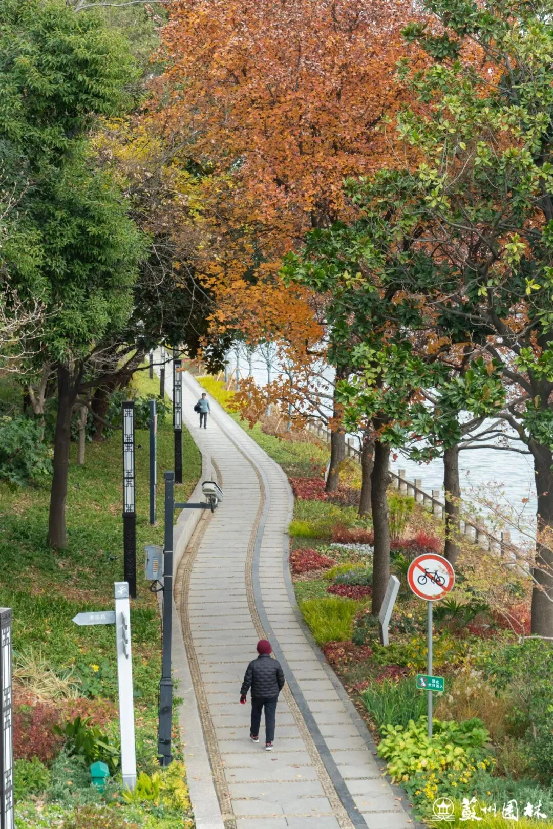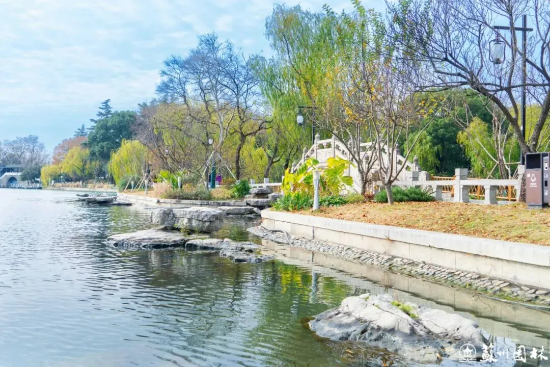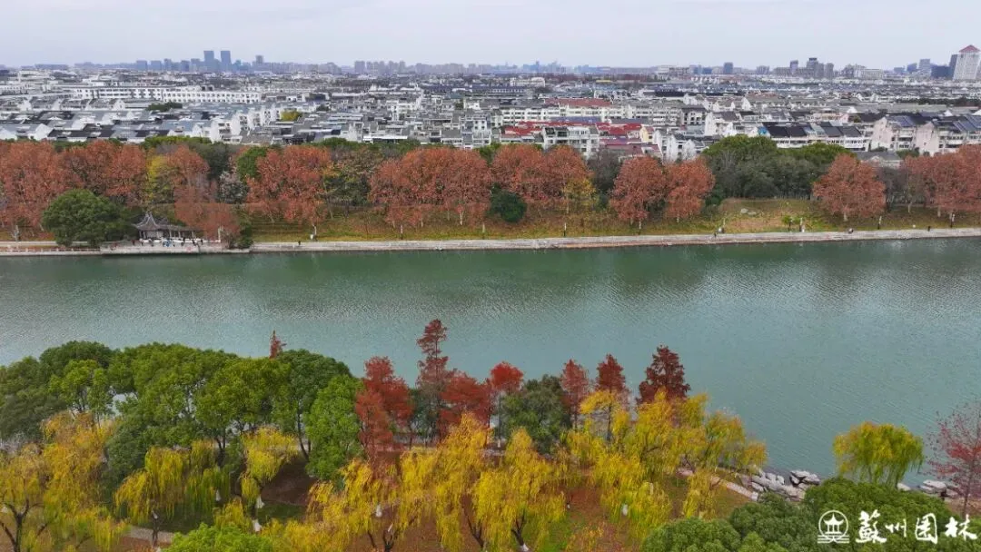 环古城河南侧的桂花公园段,通过“悠水红林”的色叶景观,显著提亮了滨水界面。让古老的城墙、芬芳的桂花与运河水景更充分地“古今交融”、互为映衬,绘就一幅四季变幻的风景长卷。