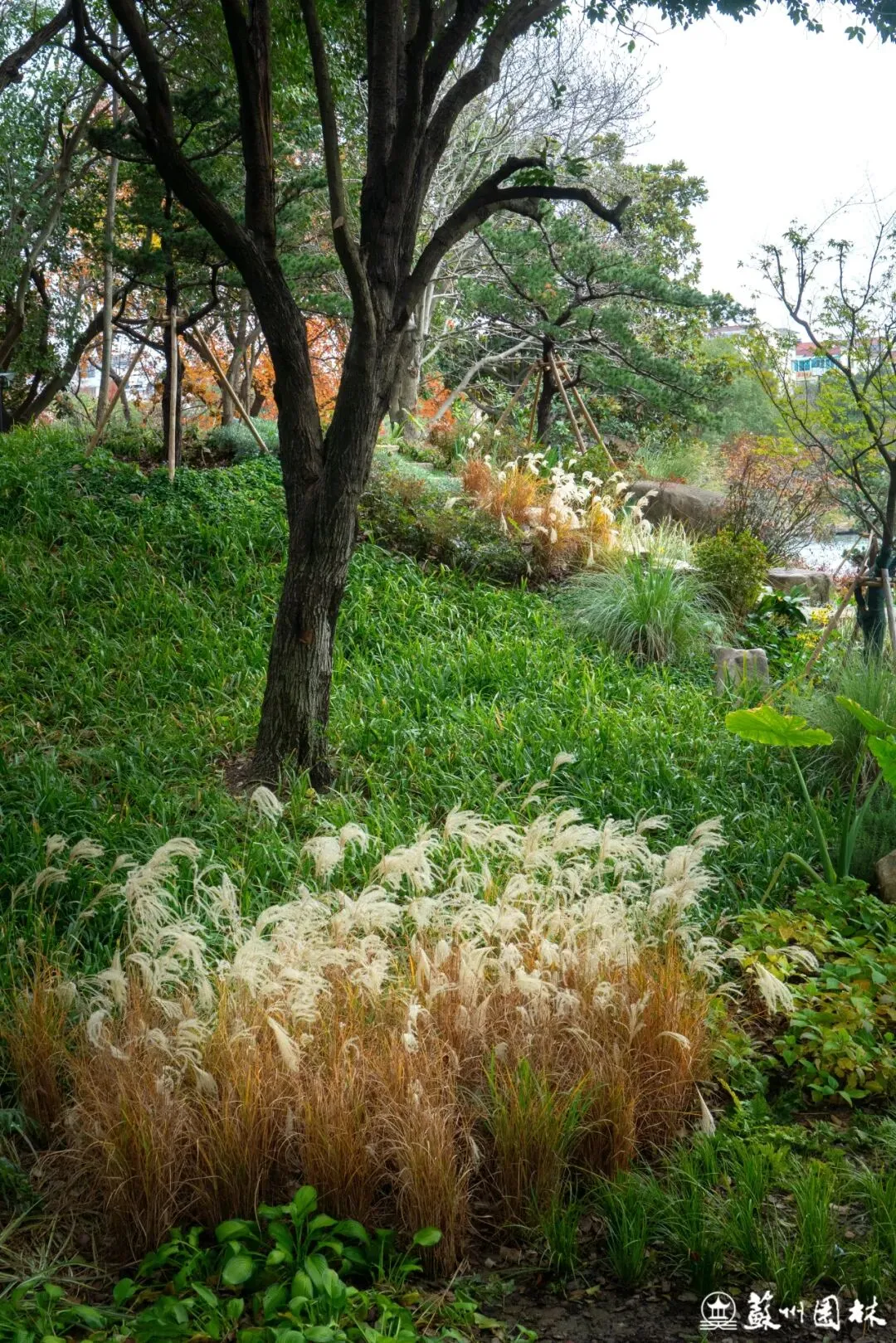 梳理水绿双亭周边植物,打造符合中式美学意境的长效花境景观。