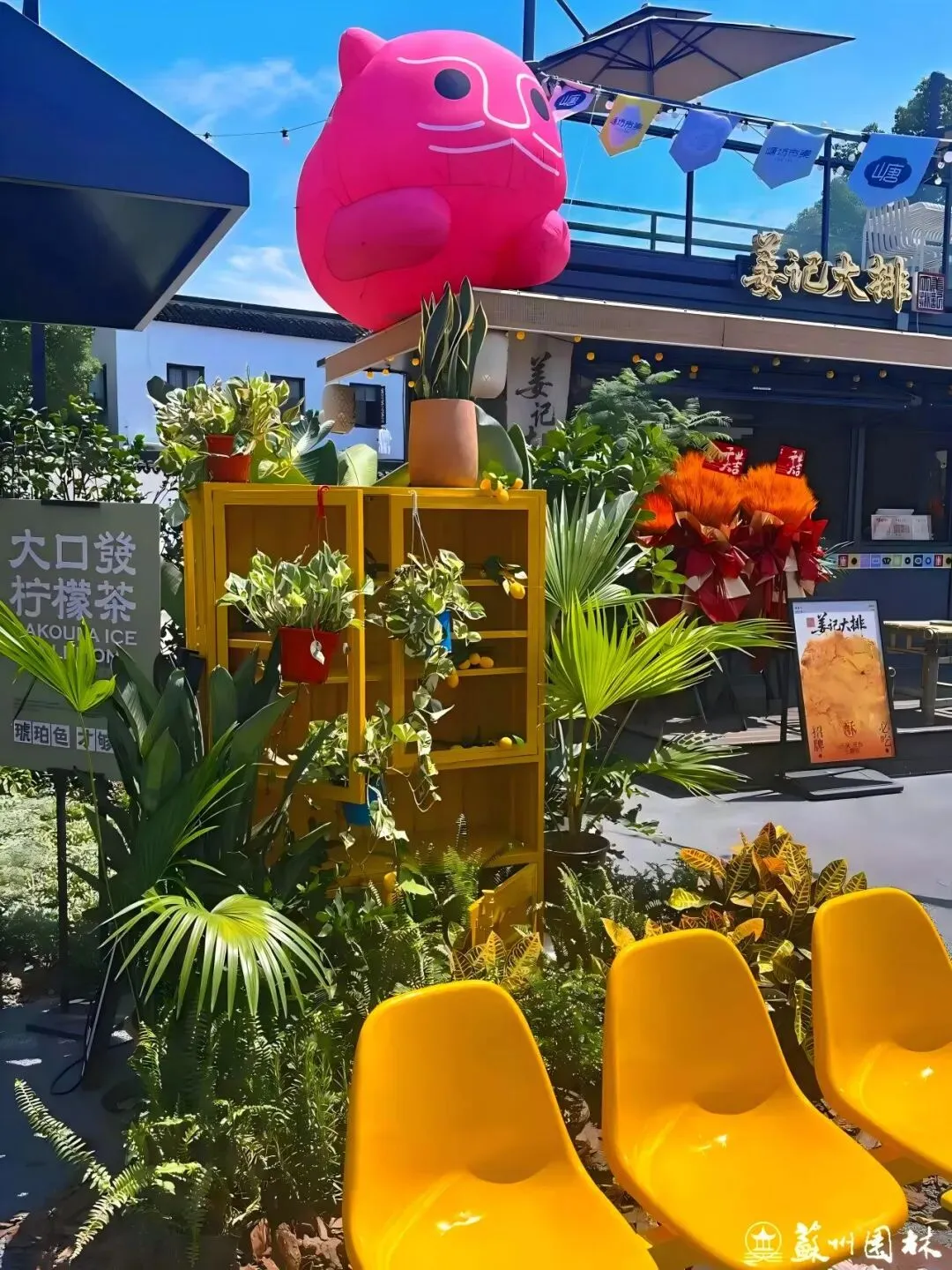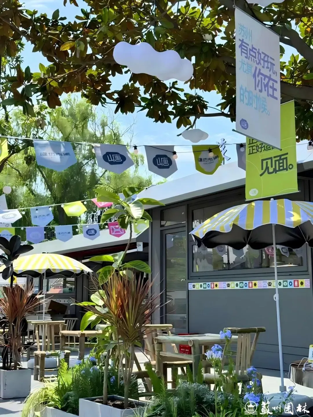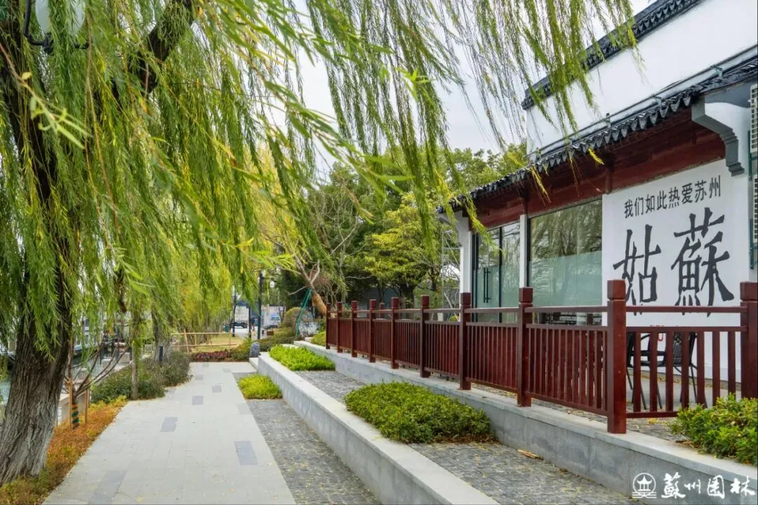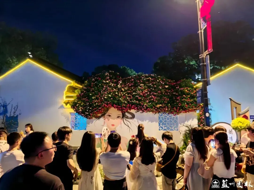 山塘街旁,曾经的百间楼停车场已焕新为全年运营的塘坊市集。改造中移除了部分车位,代之以清新的月季花墙和惬意的休闲座椅,用“轻介入、微更新”的设计,营造出一片绿意环绕、让人情不自禁慢下来的舒适空间。