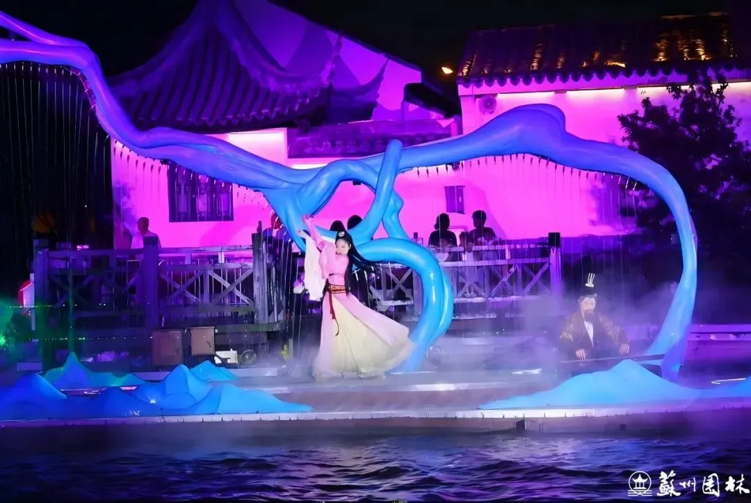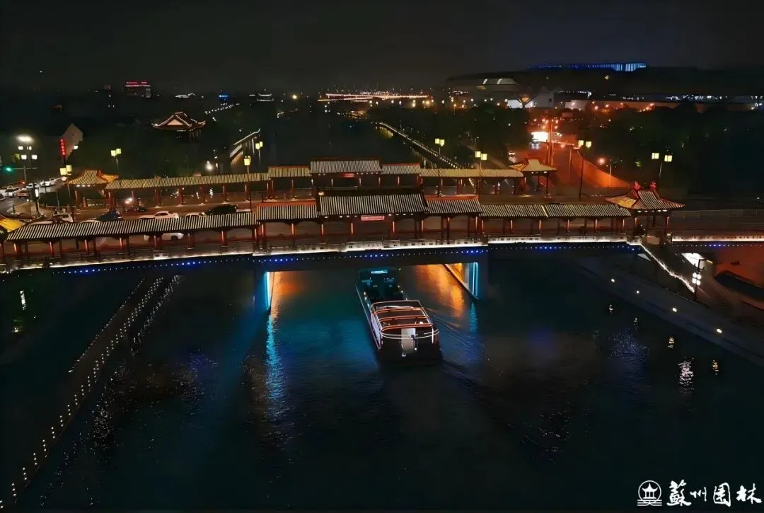 环古城河北侧的“姑苏夜画”,该水上夜游项目通过声光电科技,在齐门至平门的水路上,将古城历史与吴地风情化作一场沉浸式演出,为夜苏州提供了全新的打开方式。