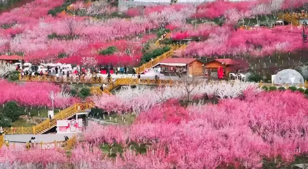 万株梅海:园内种植了美人梅、送春梅、朱砂梅、寒红梅等140余个品种的梅花,色彩斑斓,交织成一幅春日画卷。