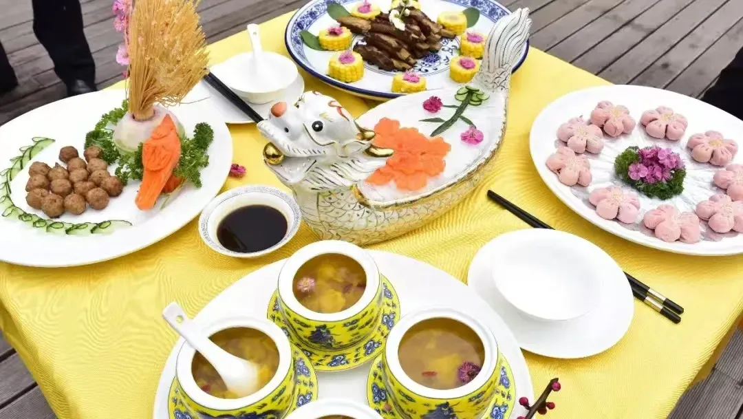 在梅子镇,以梅花和青梅入菜最早可追溯到先秦时期,近年来经过乡亲们精心研究、炮制,形成了独具梅子特色的“梅花宴”,菜品包括青梅仔排、梅香蜜藕、踏雪寻梅、乌梅红烧肉等,梅元素和山珍、河鲜、时蔬相结合,碰撞出独属于梅子的精致与浪漫。在湖畔山腰,踏春寻芳,青梅煮酒,恣意潇洒。一席独具特色的“梅花宴”,绝对让你大快朵颐、流连忘返!