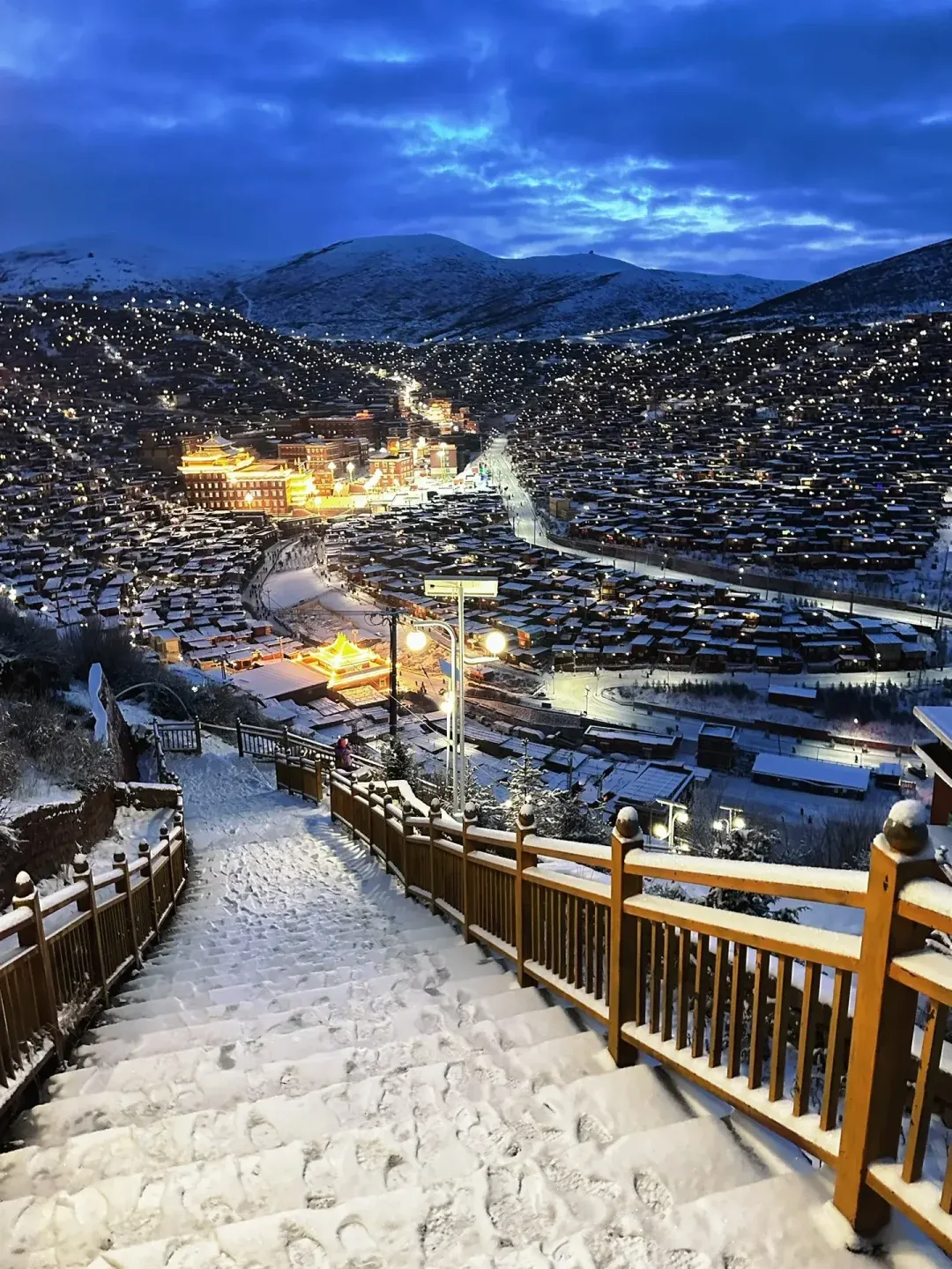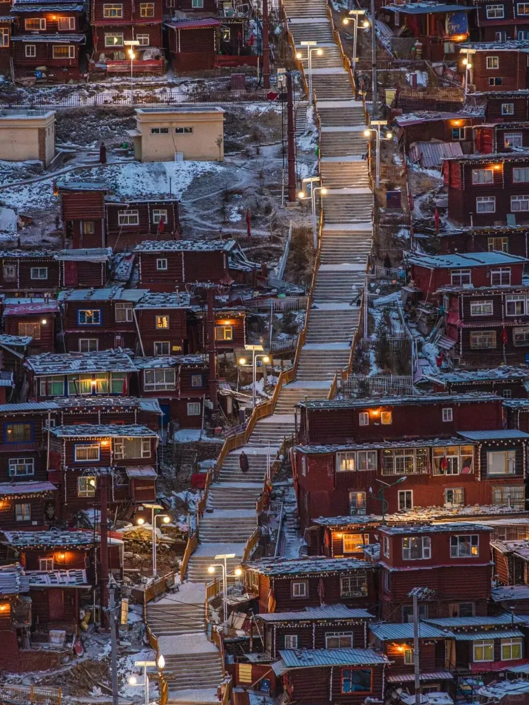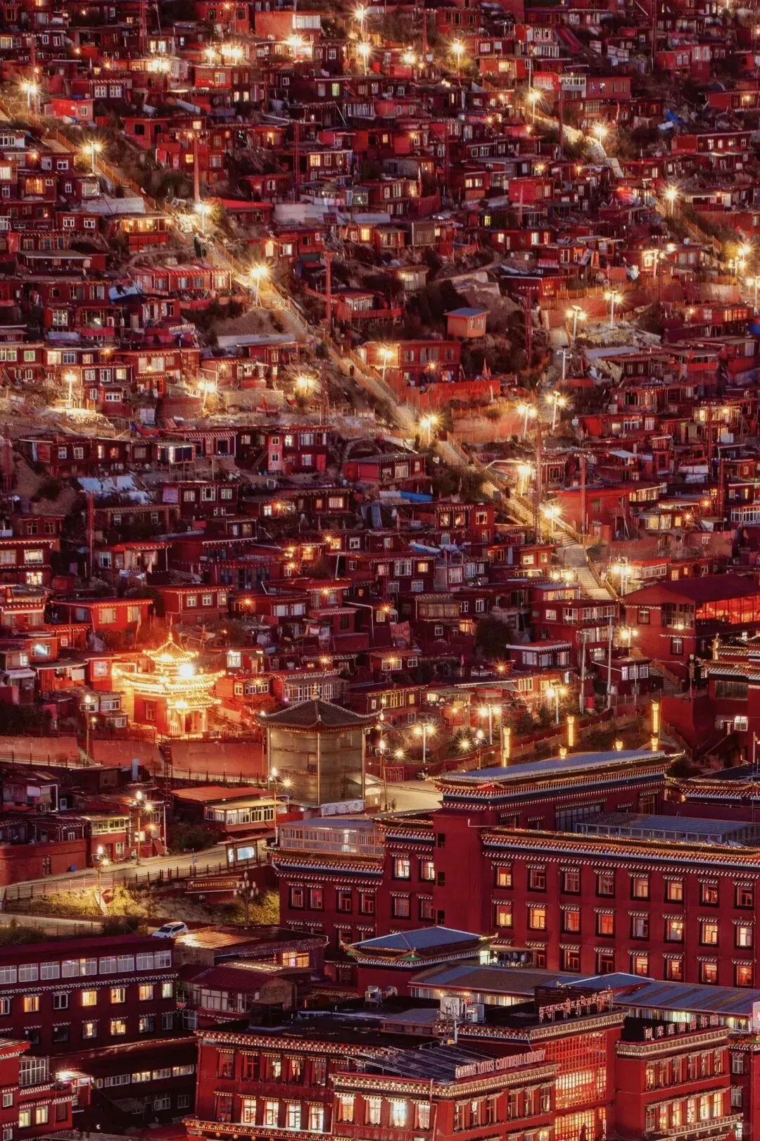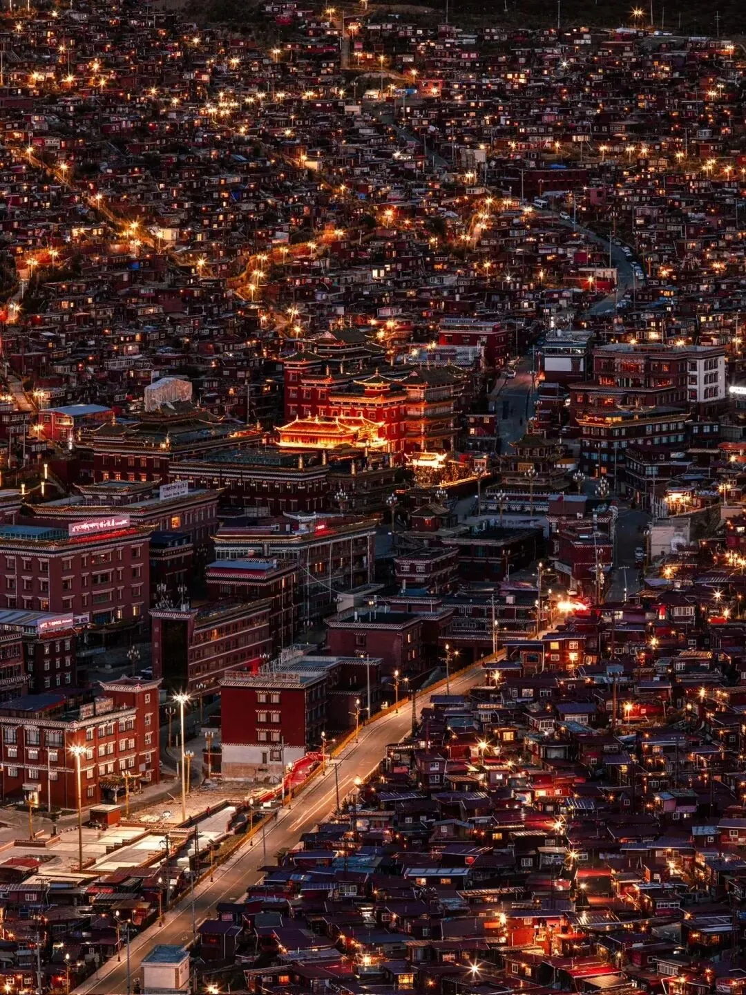 📸【 色达必打卡景点】 : a.坛城:金碧辉煌的坛城位于佛学院内蕞高的山峰之上,还有转经筒,特别是晚上开灯后 ! b.观景台:沿着坛城左边的路往上走就能找到,在这里可以俯瞰佛学院全景。 c.长阶梯:一定要走一遍,近距离欣赏密密麻麻的红房子,那种视觉冲击,真的太难忘了! d.喇荣宾馆前的公路:超火的拍照打卡地,沿着山道慢慢走下来,公路和红房子完美结合,照片氛围感直接拉满! e.东嘎寺:色达三大寺庙之一(离县城15分钟) f .天Z台:很震撼,希望大家尊重,切勿拍照