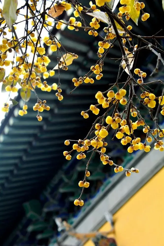 沿着山间步道前行,不经意间就会撞见一丛丛嫩黄的腊梅,或倚着山石,或挨着古寺围墙,在苍翠松柏的映衬下更显清丽。一阵寒风吹过,花枝轻颤,香气便丝丝缕缕钻进鼻腔,那是独属于腊梅的清冽甜香,让人瞬间驱散寒意。这里的腊梅带着山野的灵气,傲骨铮铮,仿佛在诉说着“不是一番寒彻骨,怎得梅花扑鼻香”的坚韧。