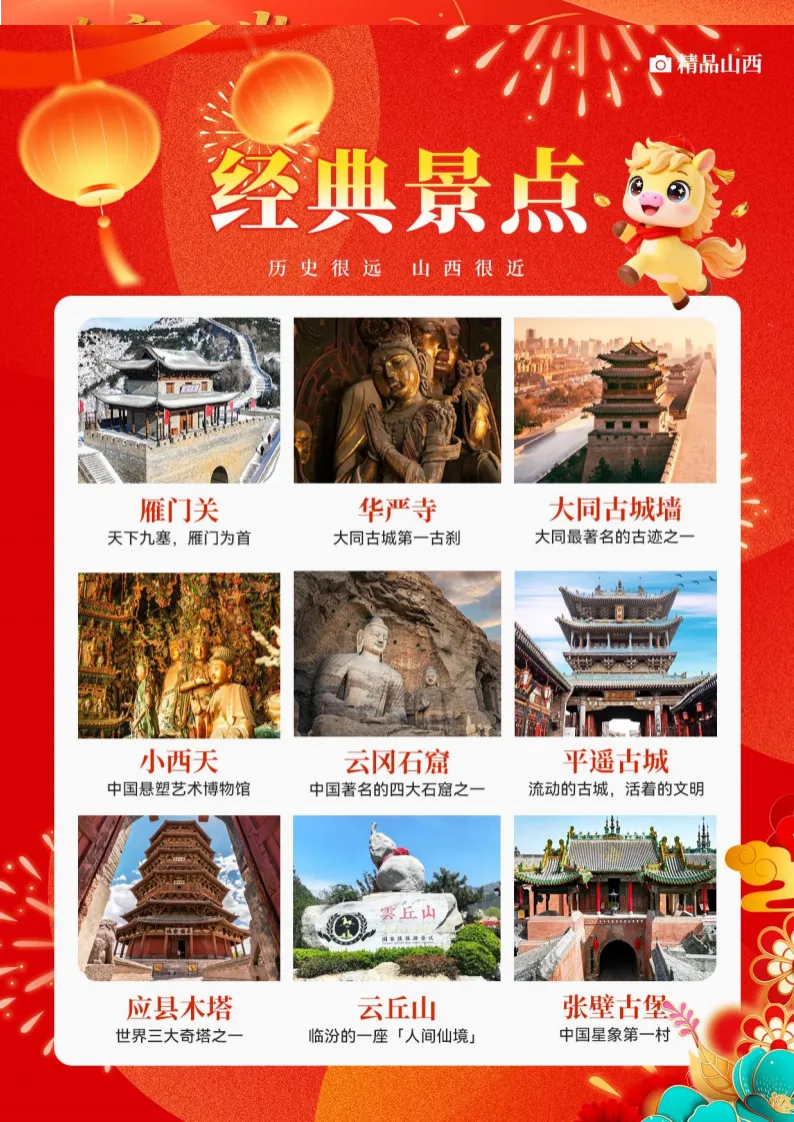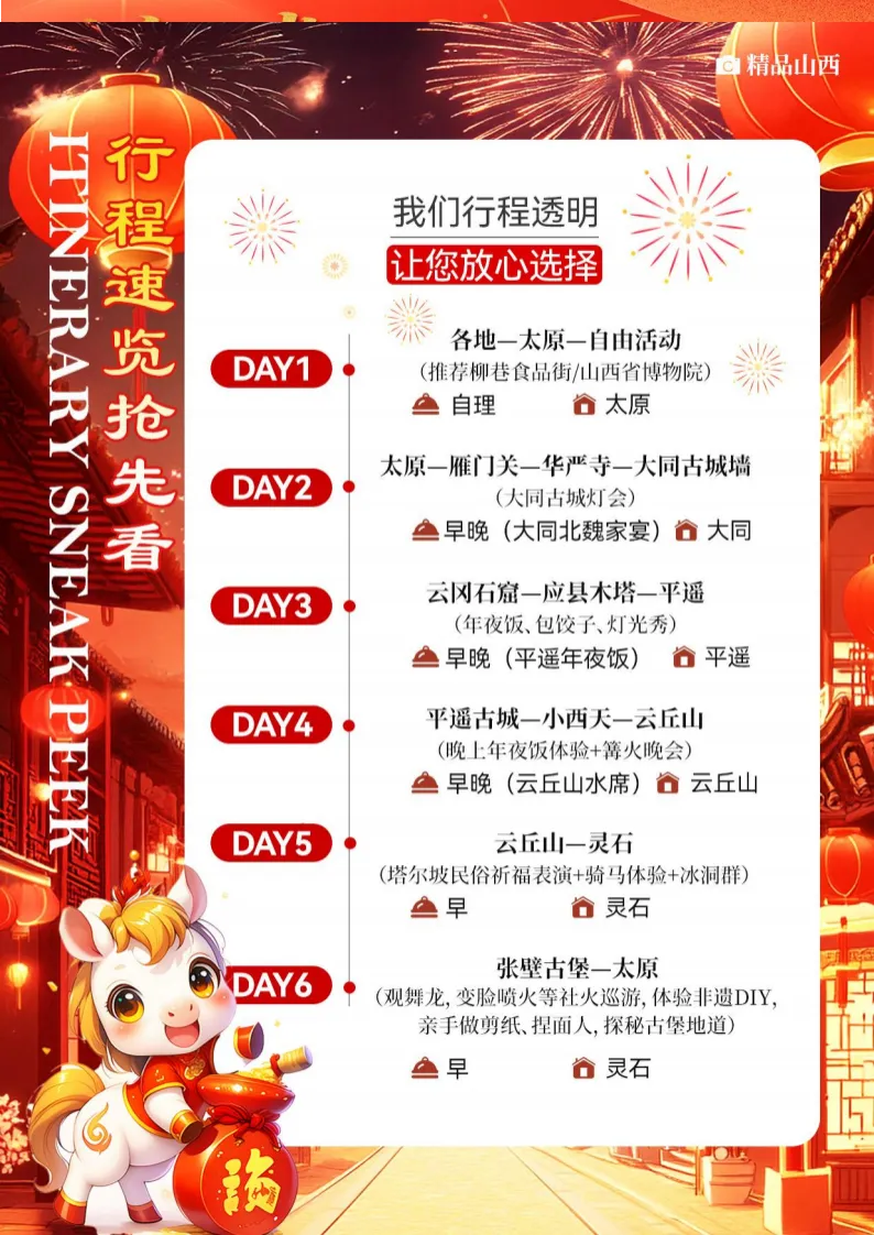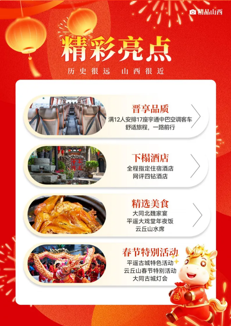 【山西过大年】山西旅游春节线路6天5晚纯玩小包团四钻住宿特色民俗体验/大同/张壁古堡/云丘山/平遥古城/小西天/雁门关