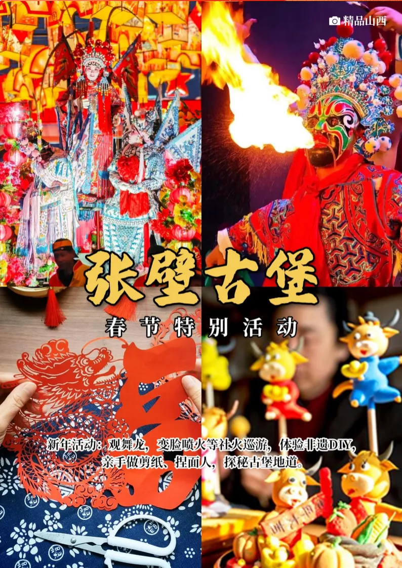 第六天 | 张壁古堡(观舞龙,变脸喷火等社火巡游,体验非遗DIY,亲手做剪纸、捏面人,探秘古堡地道),返回太原 | 早 | / |
