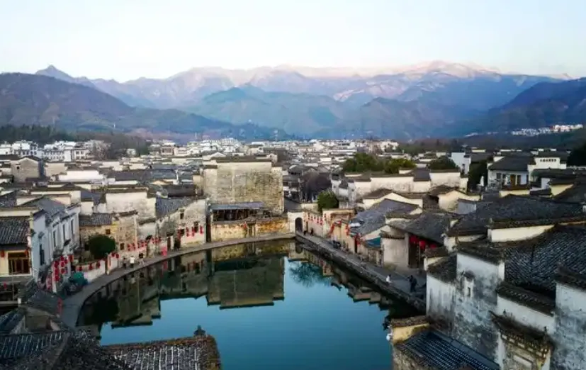 宏村,被誉为中国最美的画里古村,是徽派建筑的杰出代表。村子依山傍水,以独特的牛形水系布局闻名于世。南湖画桥横跨湖面,湖水清澈如镜,倒映着远处的山峦和近处的房屋,构成一幅绮丽动人的水墨画卷。月沼呈半月形,周围古民居环绕,夜晚灯笼亮起,氛围感拉满。漫步在宏村的小巷,仿佛走进了古老的时光,徽派建筑保存完好,木雕、砖雕精致无比,处处体现着古人的智慧。