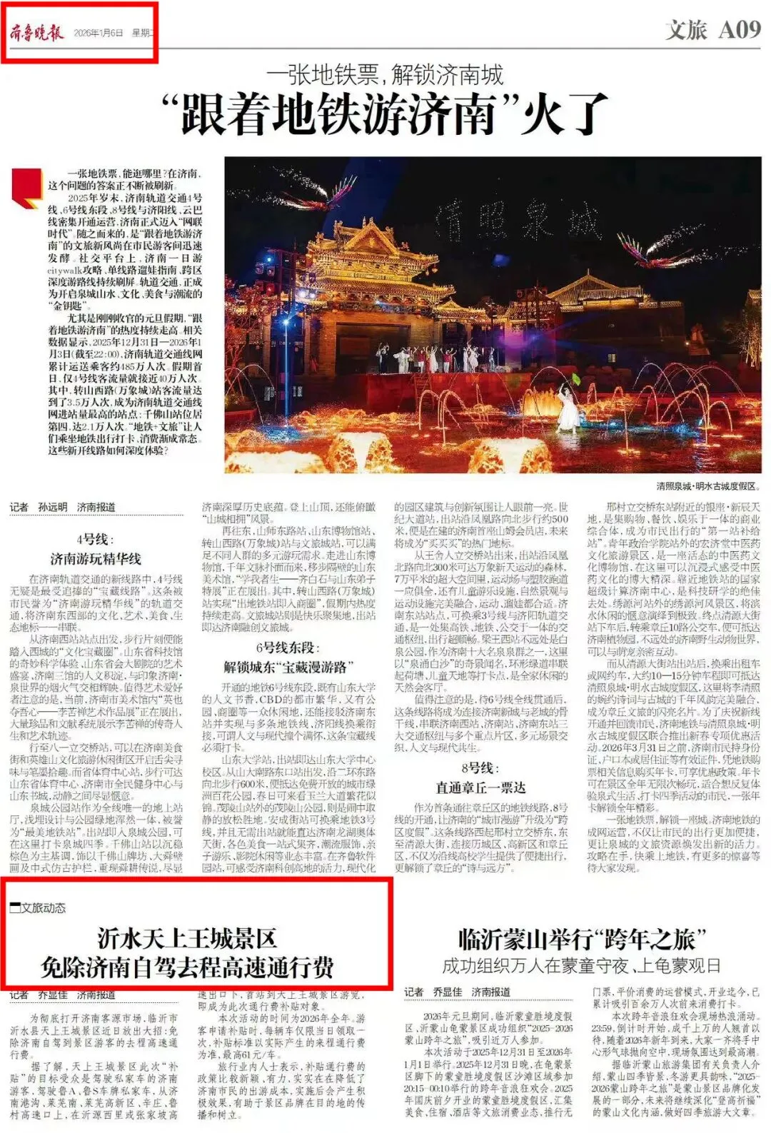 “天上王城景区给济南人报销来程高速费”