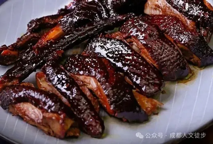 3、峨眉卤鸭:制法独特的烟熏鸭,鸭肉香而不燥,古香浓郁,是峨眉山的一大特色美食。