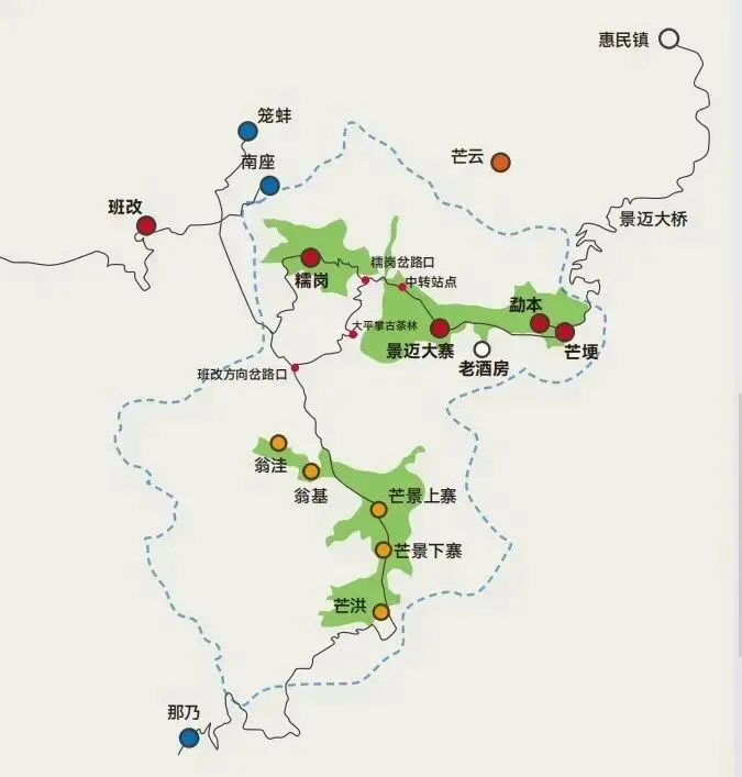 ●版纳(嘎洒机场、高铁站)→景迈山(133km)