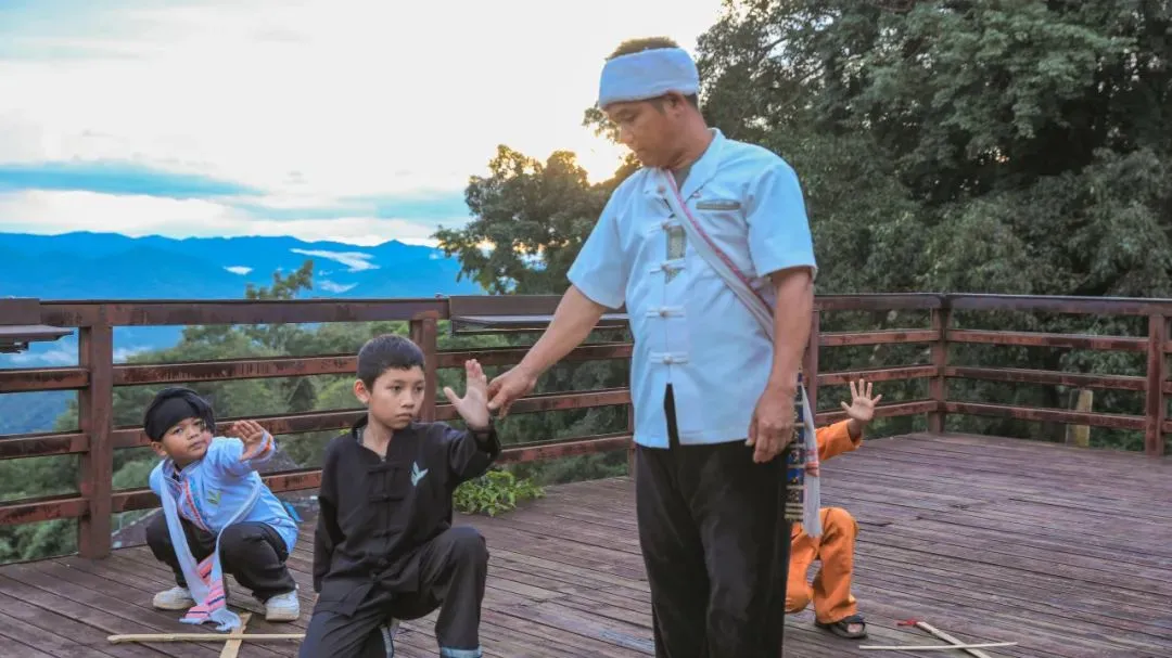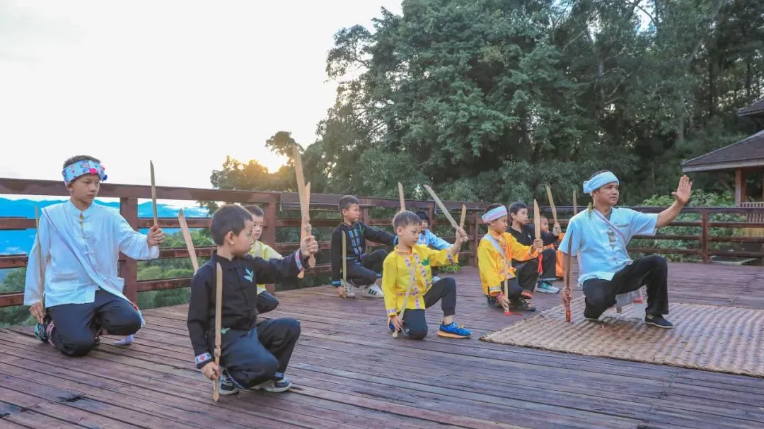 刀舞作为布朗族最具代表性的传统武术舞蹈,刚劲有力的动作间流淌着这个古老民族的历史血脉,每一式都凝聚着深厚的文化精髓。家长可以带领孩子跟随布朗族刀舞传承人苏兴华从基础刀法入手,深入探索布朗族刀舞的丰富内涵,在强健体魄、磨练意志之余,通过沉浸式的文化体验中培养孩子们跨文化的理解能力与包容胸怀。