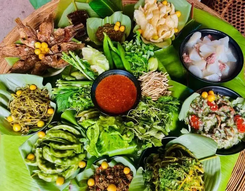 在景迈山各家餐馆或民宿中,都能品尝到特色美食。推荐尝试布朗族的酸肉、酸茶、茶叶宴、火塘烤茶;傣族的竹筒饭、手抓饭、螃蟹脚炖鸡、百草宴;佤族的鸡肉稀饭;哈尼族的包烧芭蕉花、包烧小河鱼等。