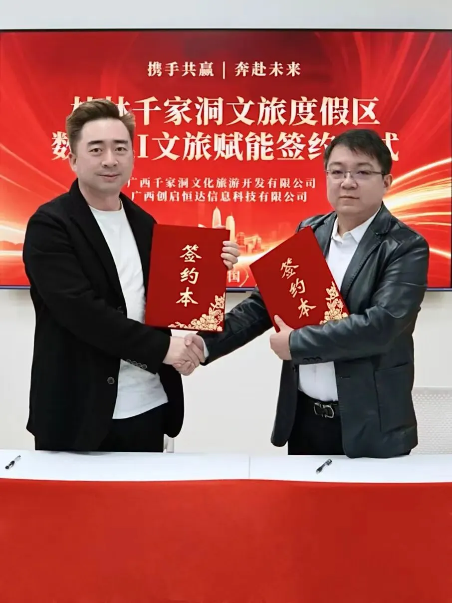 1月5日,国家AAAA级旅游景区——桂林千家洞文旅度假区与广西创启恒达信息科技有限公司正式签署合作协议,共同启动桂林市首个景区数字化转型项目。此次合作标志着桂林文旅产业在科技赋能、智慧升级方面迈出关键一步。