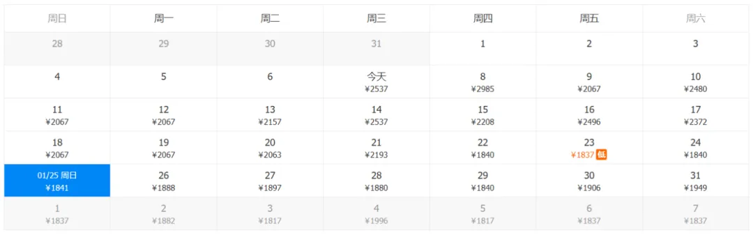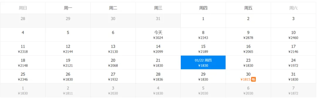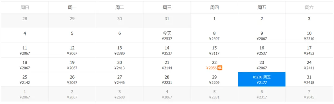 *以下机票信息为1月7日18:00携程官网数据,