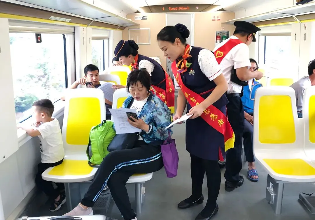 列车长吕明泉说:“市郊列车开通后,动车和市郊列车的无缝衔接方便了很多旅客的出行。这也更加考验我们的工作能力,让旅客出行的每一关卡都能享受到优质的服务和帮助。”