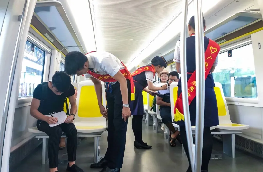 开通初期,很多旅客还不清楚我的开行情况,面对旅客好奇的询问,他们始终不厌其烦,热心地向旅客介绍,引导旅客乘坐、体验我的便捷。