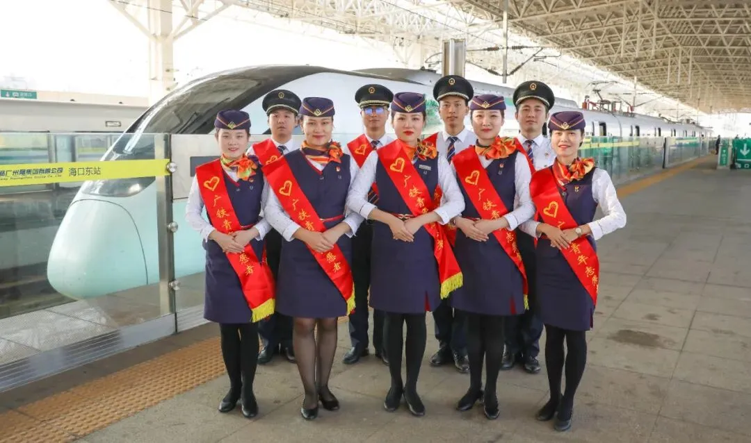 担当海口市郊列车乘务工作的是海口车务段海南动车队市郊乘务班组,班组共20人,平均年龄27岁,是一个年轻有朝气的青年集体。
