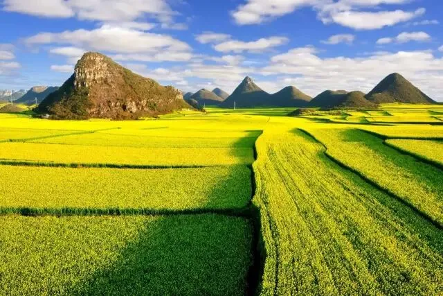 罗平,中国四大油菜花观赏基地之一,每年2、3月份,20万亩油菜花在罗平坝子竞相争艳,放眼望去,一片金黄,绵延数十里,好似金浪滔滔的海洋,流光溢彩。在这里,邂逅2017年第一抹春,徜徉在花田间,感悟花香阵阵的春天。