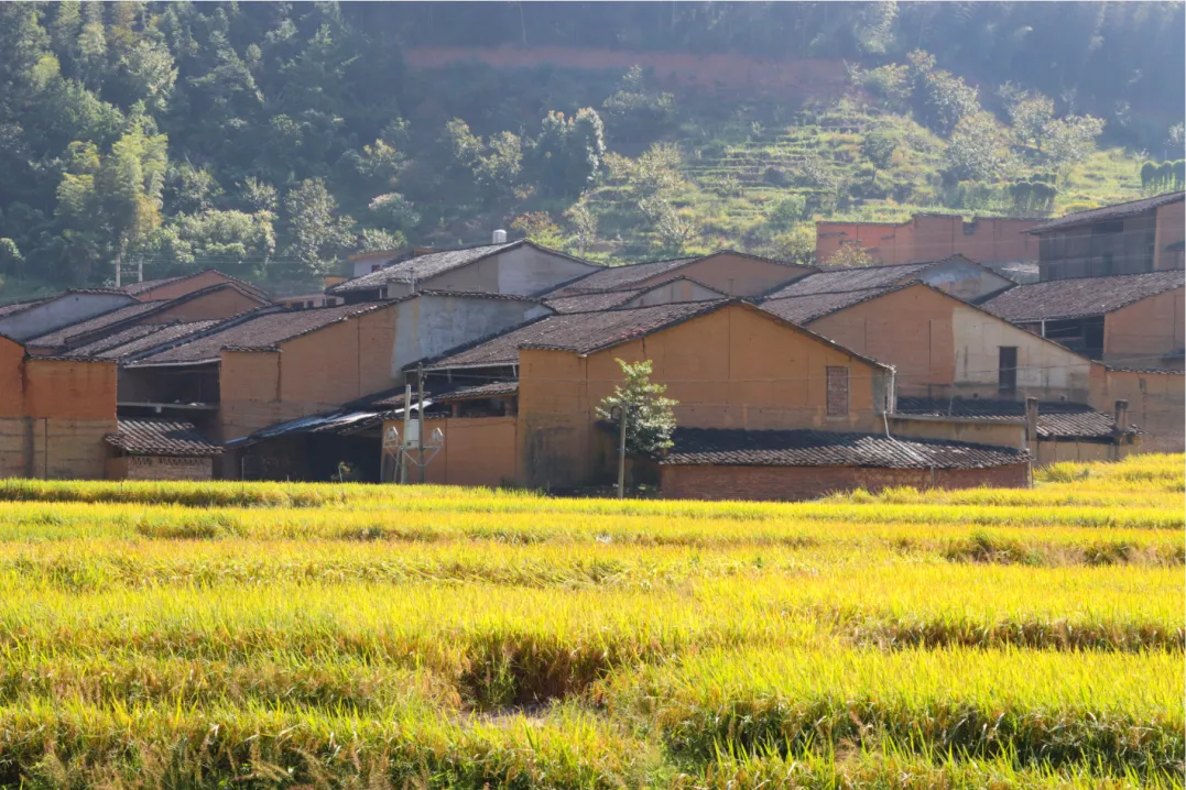 金秋时节稻浪翻涌,与翠竹相映成趣。