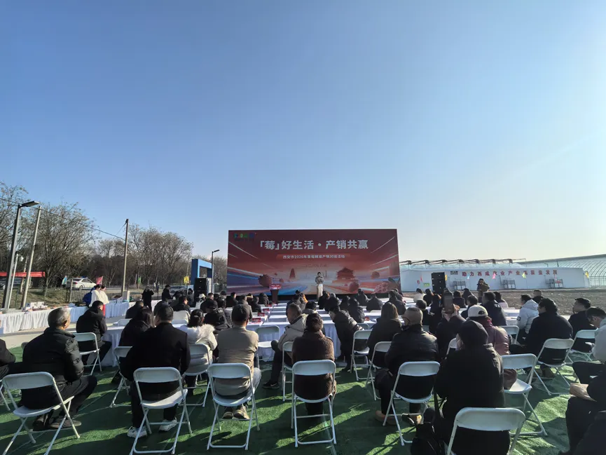 1月7日,“‘莓’好生活 产销共赢——西安市2026年草莓精准产销对接活动”在西咸新区草莓示范种植基地举行。(记者骆妍)