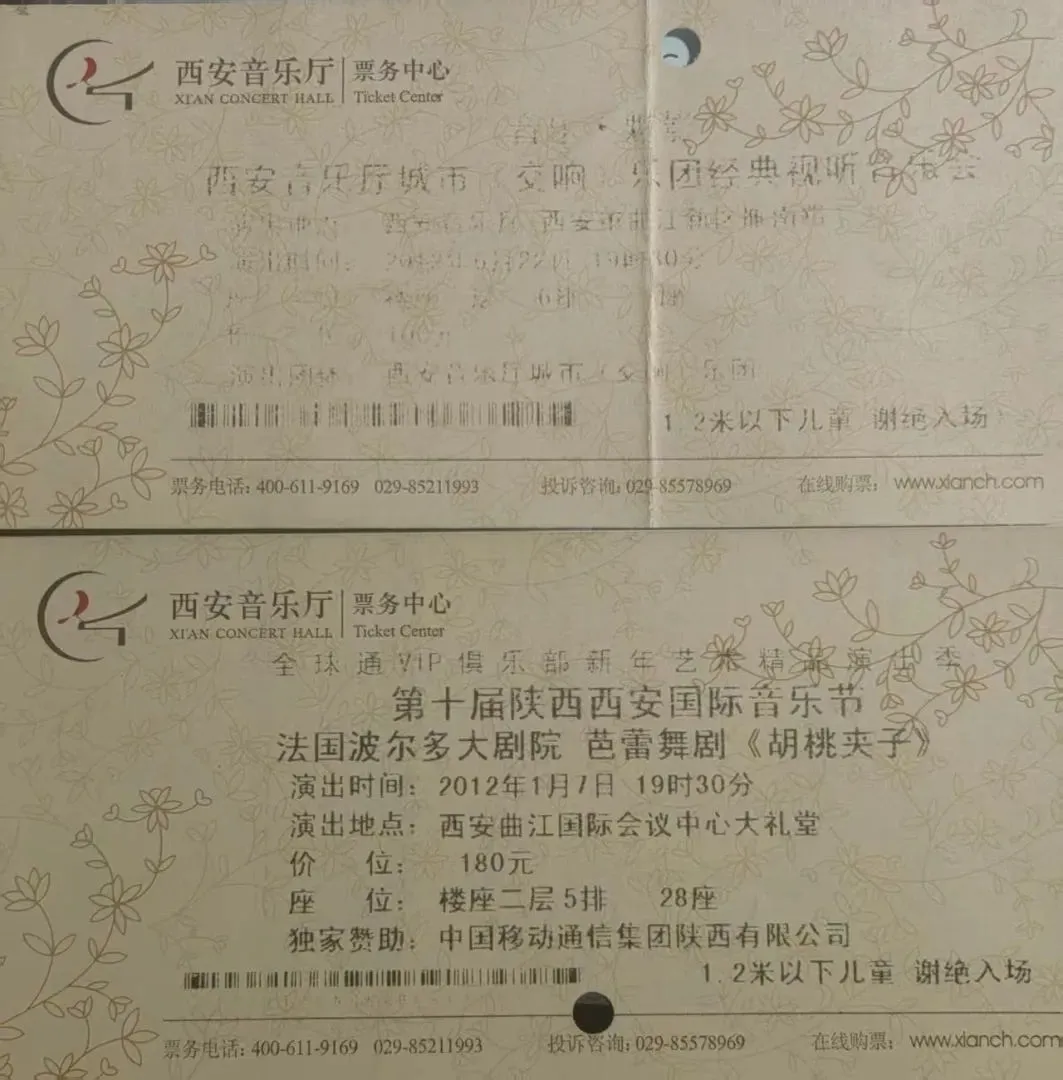 巧克巧蔻.巧克力博物馆(西安)门票 五、西安音乐厅 也是门面四天王之一,西安音乐厅位于西安美术馆的斜对面,包含交响乐大厅、室内音乐厅、流行音乐厅等演出空间,其中西部最大的交响乐大厅设有1343座。这些年演出阵容星光熠熠,承载了西安的大多数顶级演出。但音乐厅的门票设计一直不怎么好看,基本就是一张机打票根,而且用的是最让人头疼热敏打字,久了就无迹可寻。