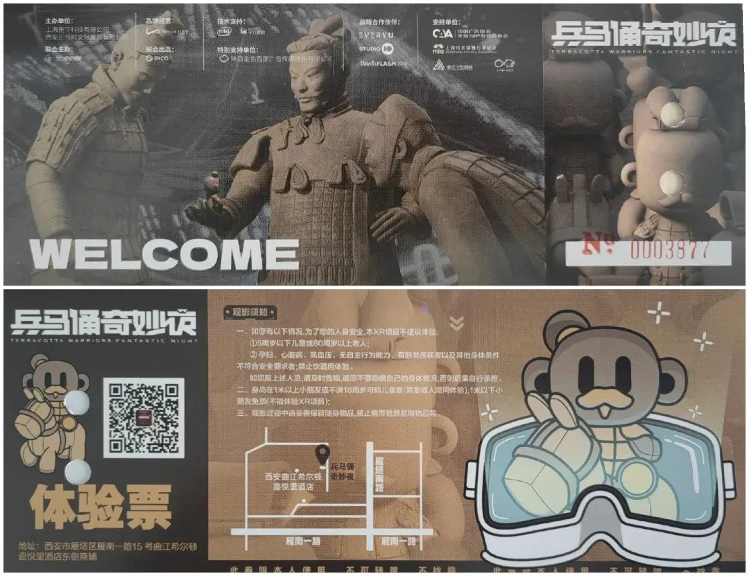 西安柴窑文化博物馆门票(副券的券字错版) 十、兵马俑奇妙夜 VR场馆,位于雁南一路 15 号希尔顿嘉悦里酒店商铺负一层。戴上VR设备骑小马勇闯兵马俑。VR主题馆这几年特别火,几乎快成了大博物馆和景区的标配。