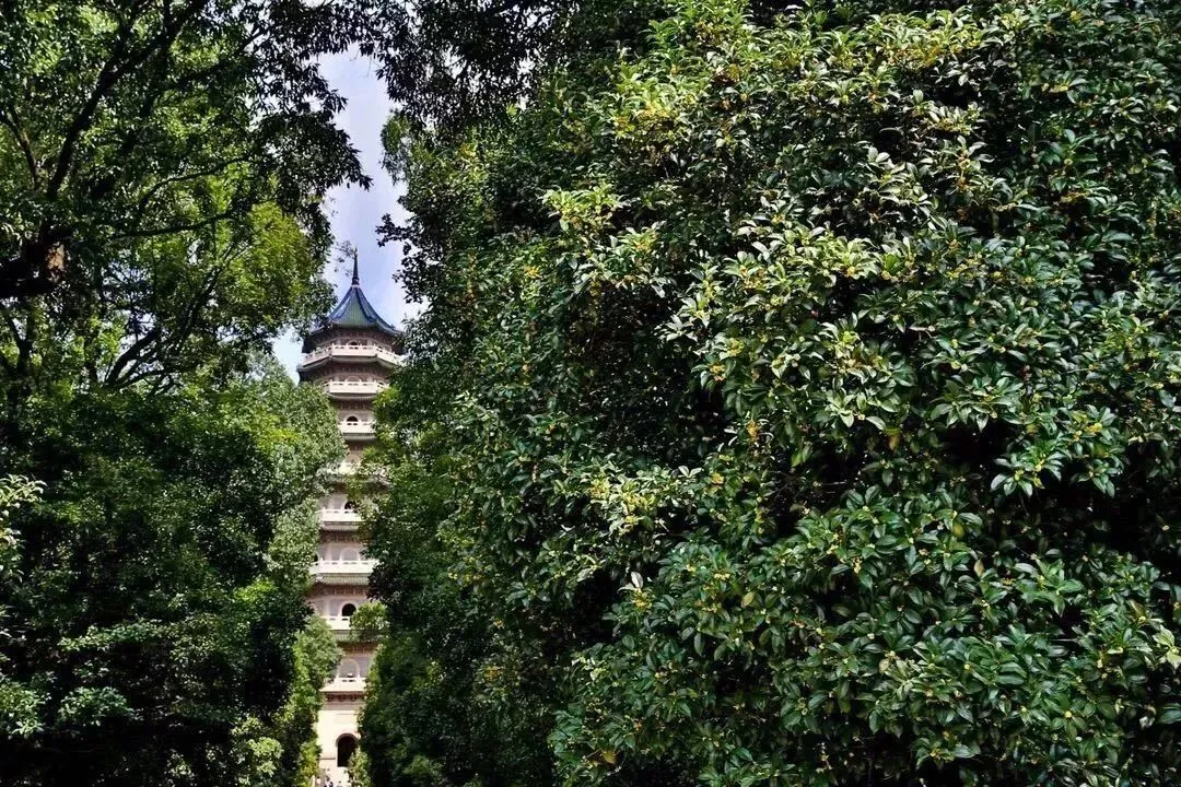 秋天,灵谷寺的桂花也是一绝,寺内无梁殿北侧的草坪上,有一棵树龄达百年的桂花树,枝繁叶茂,有“金陵桂花王”之称,每年秋天,满树桂花,香味绵延。
