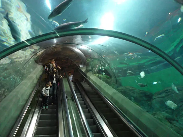 水族馆中还有4条堪称世界之最的海底隧道,总长达168米。特有的自动步行海底隧道、180度和270度的全方位景观视窗,让游客有身临其境之感。