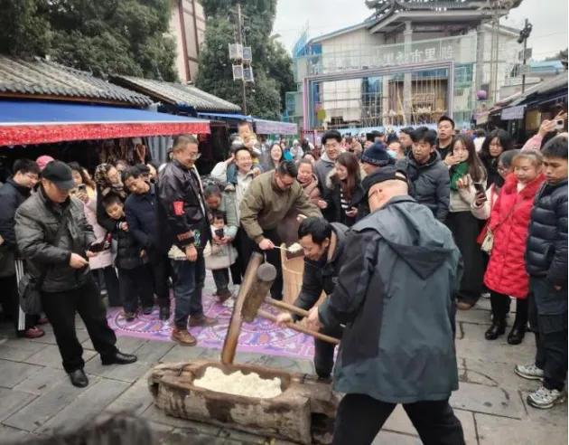 活动现场呈现出一派热烈喜庆的氛围。大家结伴而行,或驻足打卡记录美景,或热情体验民俗活动,处处洋溢着喜庆祥和的假日氛围。游客们自觉维护景区游玩秩序、互相礼让、不推搡不拥挤,轻声交流,让游玩之旅更添舒心。在打糍粑的场地,游客们纷纷挽起衣袖,积极亲身参与打糍粑活动,真切体验传统民俗的独特魅力。大家在赏景玩乐的同时,也能自觉地把垃圾投入到垃圾桶中,做到“垃圾不落地”,共同保护环境卫生。