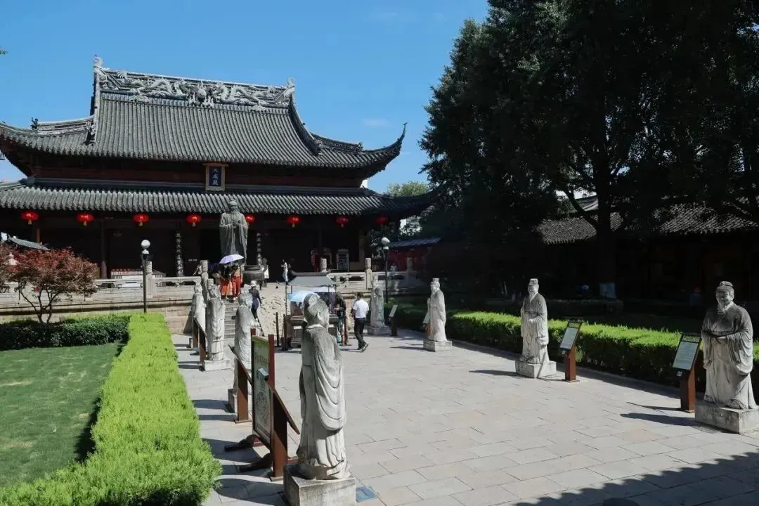 大成殿是夫子庙秦淮风光带的核心景点著名的孔庙、学宫——夫子庙儒学文化中轴线,整座建筑重檐飞翘,斗拱交错,气势雄伟。殿内正中悬挂着全国最大的孔子画像。四周墙壁镶嵌有《孔子圣迹图》壁画,再现了孔子的一生行迹与相关的历史事件。