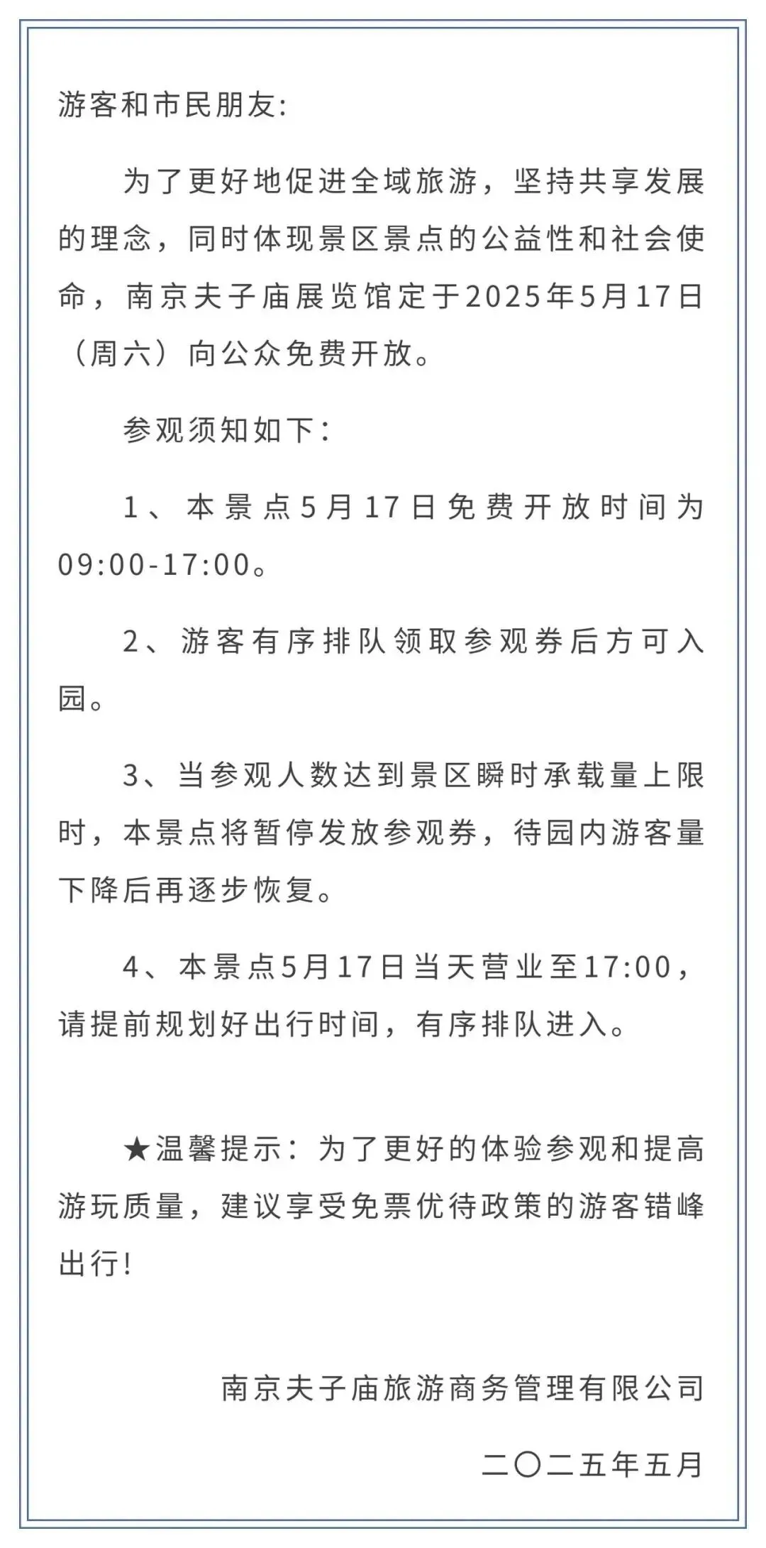 免费开放时间:2025年5月18日8:30—17:00