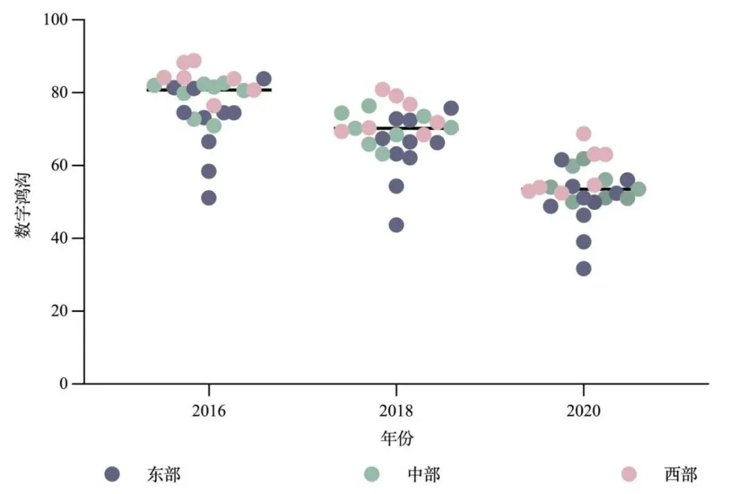 各年份数字鸿沟与家庭旅游消费水平