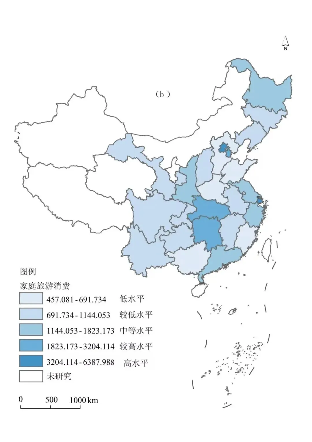 各省份数字鸿沟与家庭旅游消费空间分布图